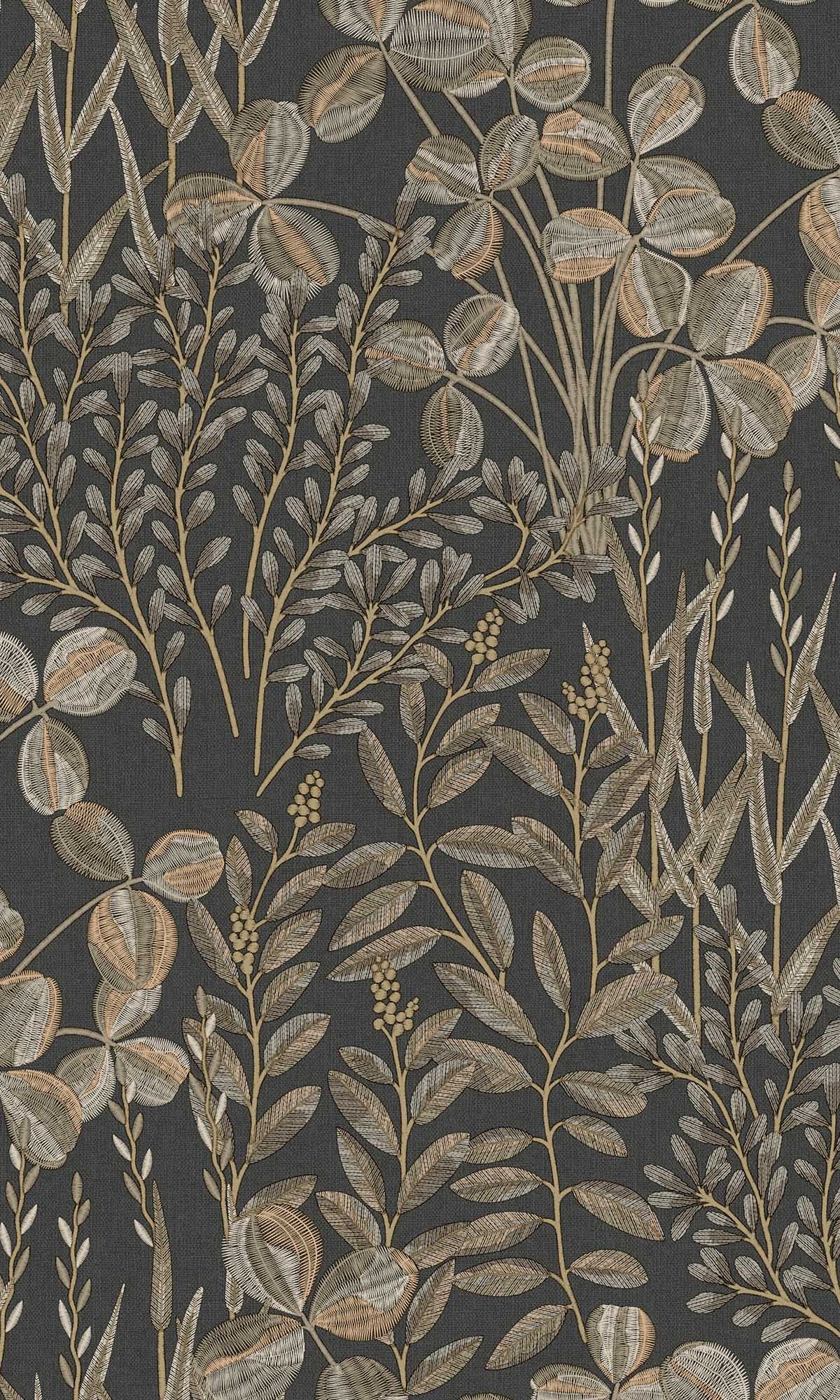 Baltic Sea Black Stitched Leaf Print Wallpaper R10112