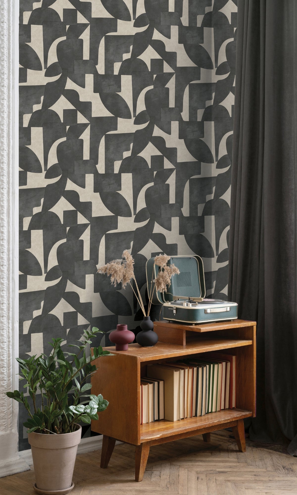 Cream Charcoal Modern Asbtract Geometric Wallpaper R8975