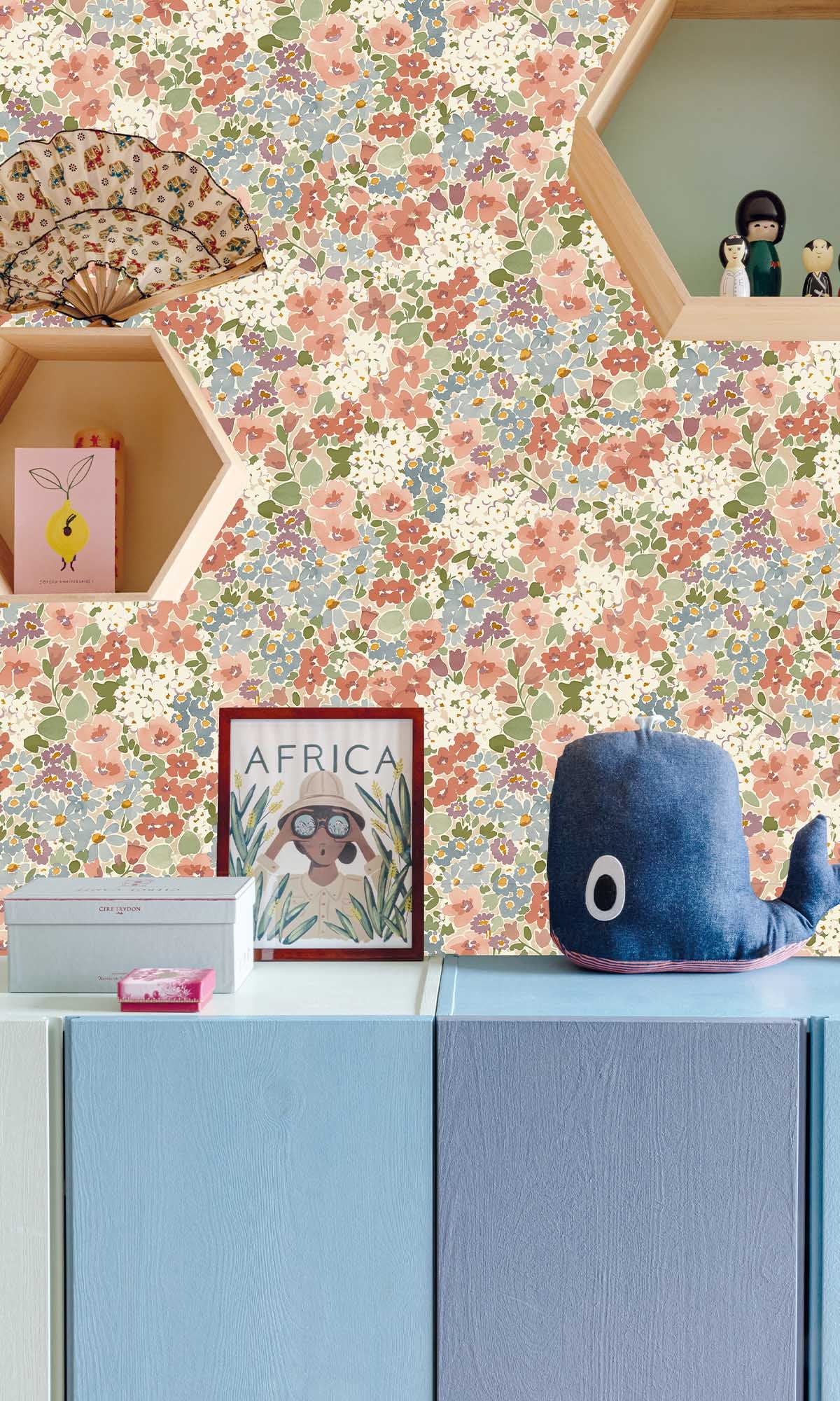 Give your home a lift with our Allover Floral Wallpaper. It’s got that classic, easygoing vibe—like bringing a bit of the outdoors right into your space. Tiny flowers in yellow, purple, orange, and white pop against soft green leaves, so you get this fresh, cheerful energy that works just about anywhere.