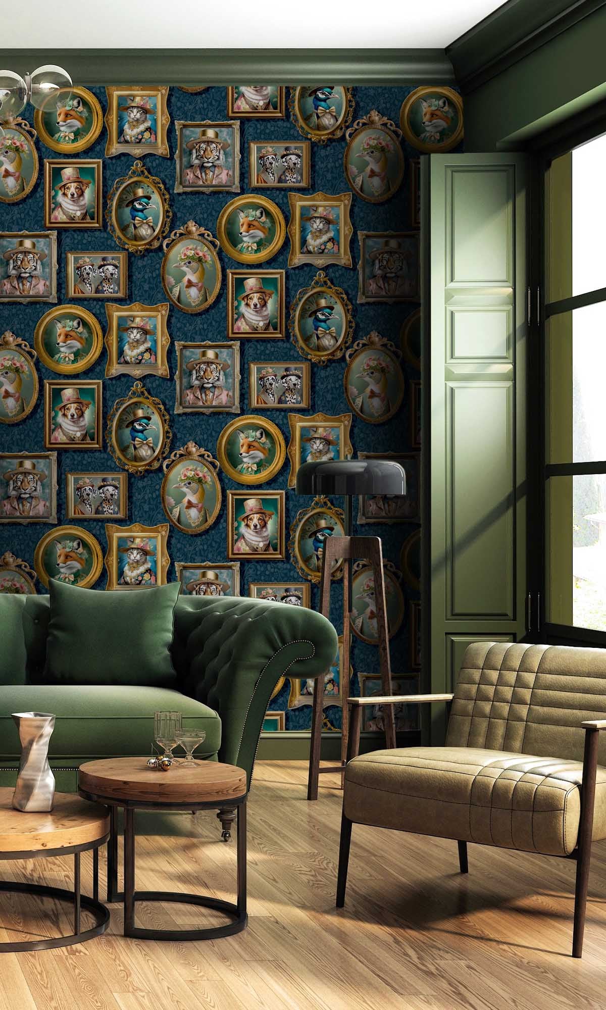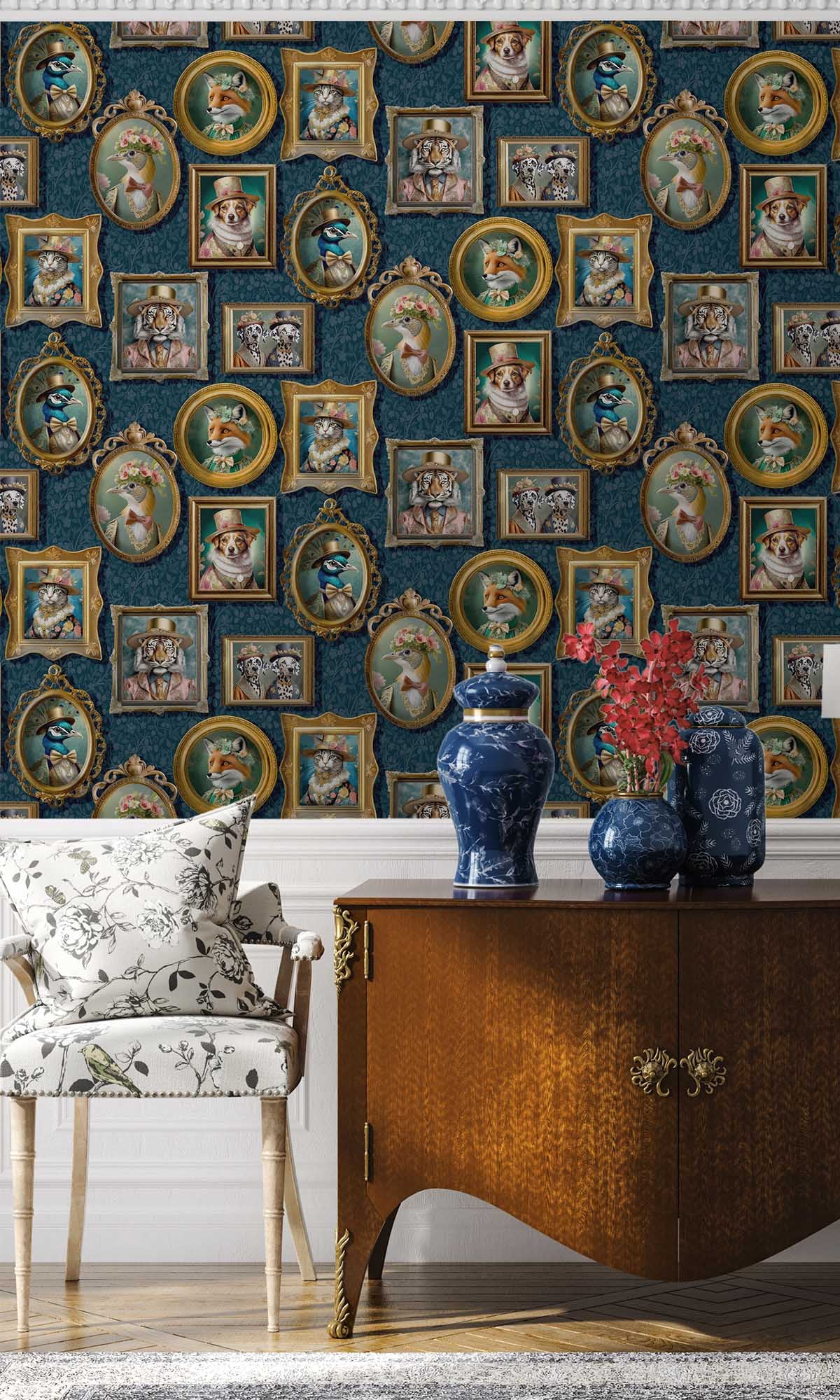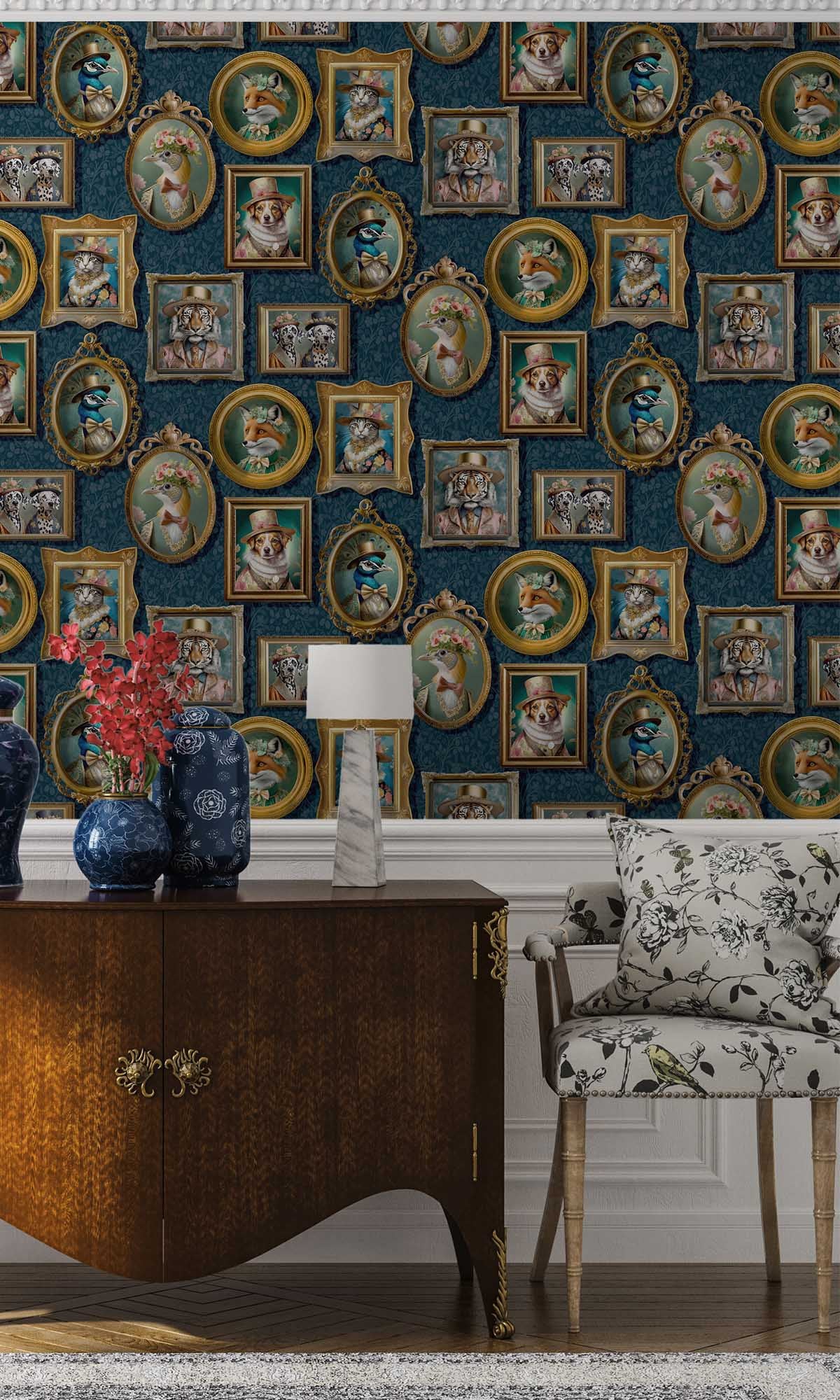 Hey, let’s talk about a wall that’s actually fun to look at, not just, you know, a wall. The Framed Regal Beasts Wallpaper? It’s like your room gets a personality upgrade—suddenly you’ve got these fancy animals hanging around in their Victorian best. Imagine dogs with top hats and foxes in gowns, all looking like they’re about to spill some royal tea. It’s playful, a little bit cheeky, but still totally stylish.