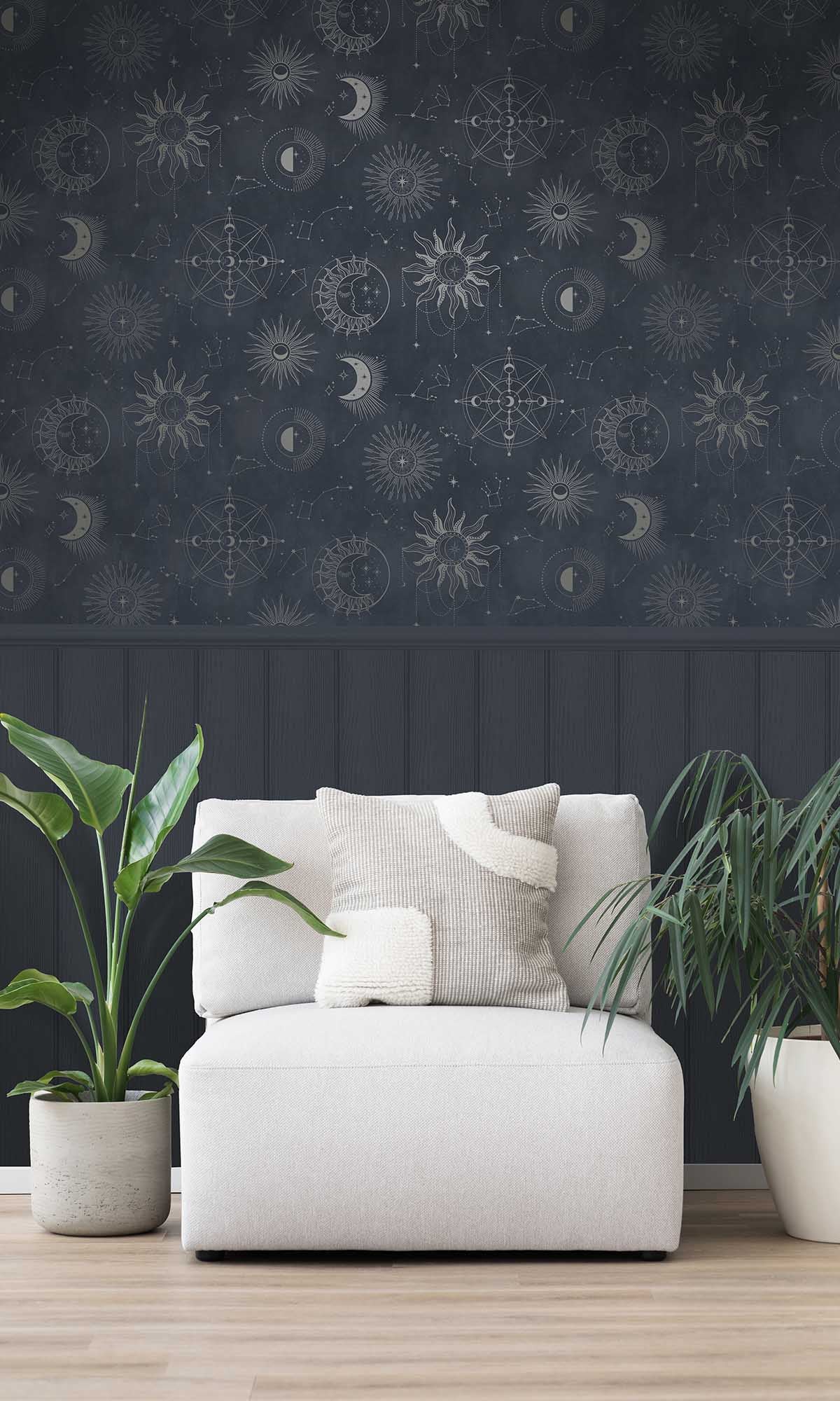 Navy Silver Ancient Celestial Skies Wallpaper R10091
