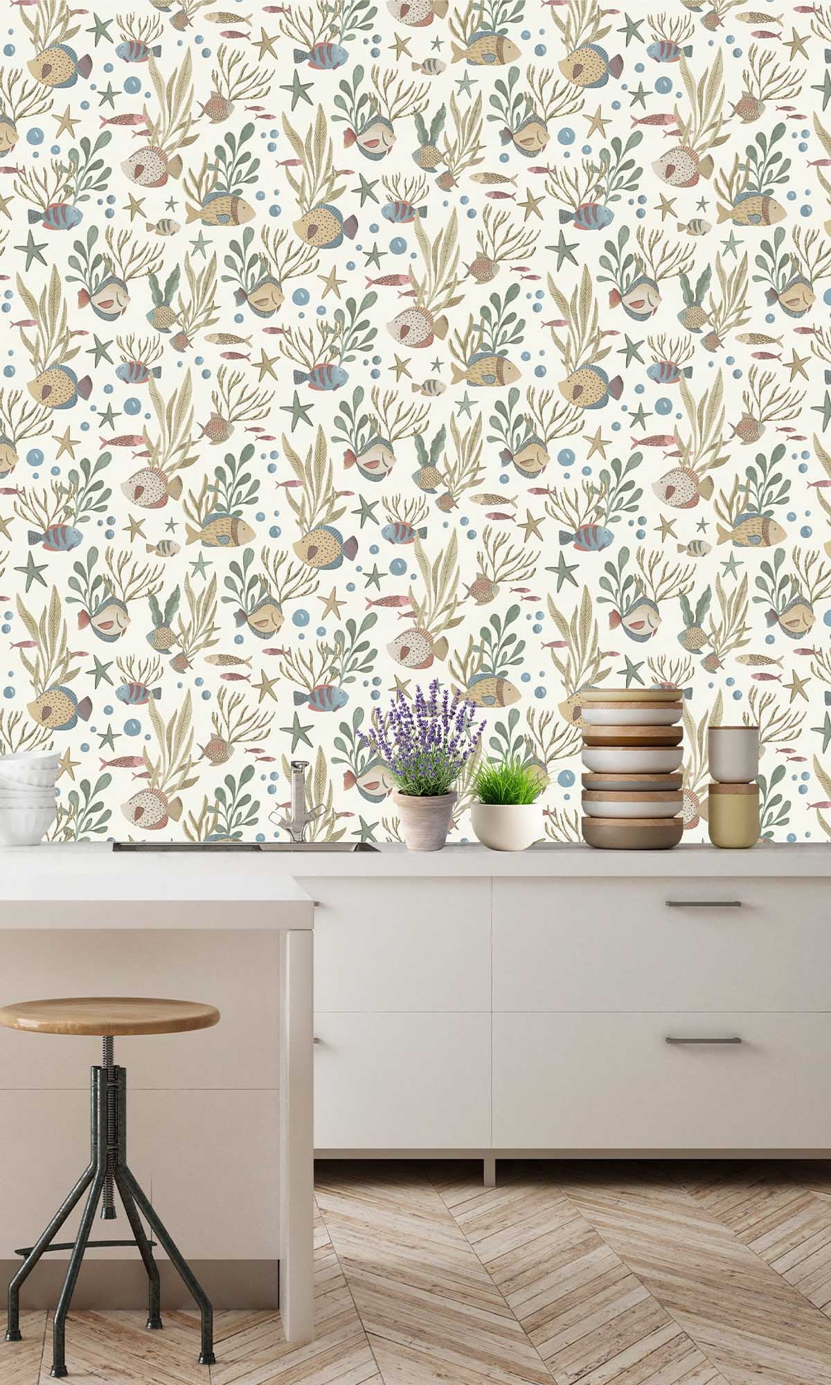 Turn your child’s room into a gentle underwater world with our Underwater Scene Wallpaper. It’s a playful, easygoing design that works just right in nurseries, bedrooms, or any spot where kids like to play and dream. The wallpaper is covered in hand-drawn fish, starfish, and lively sea plants—think cheerful faces and soft shapes that make you smile. It brings all the color and wonder of the ocean floor, but in a way that feels safe and inviting for kids.
