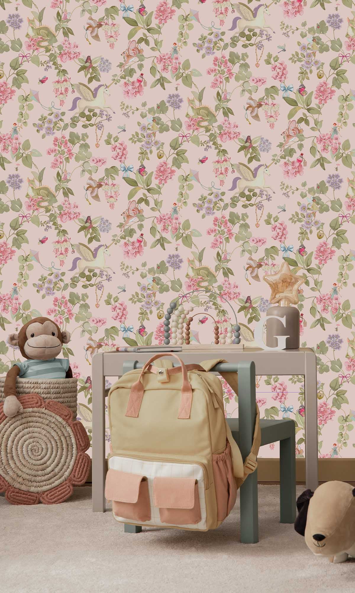 Alright, picture this: you walk into a room and—bam!—it’s like you’ve just tumbled headfirst into a storybook. The walls? A riot of soft flowers, but look closer and you’ll spot cheeky little fairies peeking out, a unicorn strutting its stuff, maybe even a dragon catching some Z’s. This wallpaper isn’t just decor; it’s basically an open invitation to daydream.