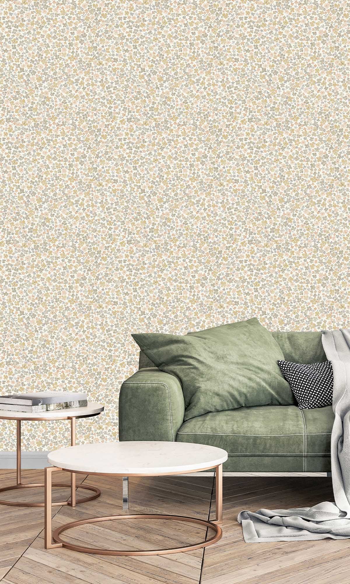 Raffia Beige Floral Ditsy Wallpaper R10230