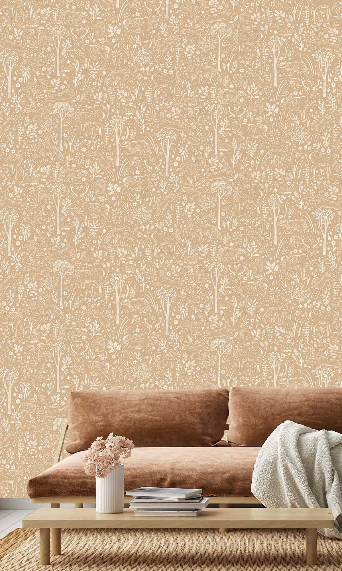 If you want a nursery or a cozy little nook that looks like it belongs in some dreamy fairytale, this Forest Scene Wallpaper is kind of a no-brainer. It’s got that soft taupe or beige vibe going on—not screaming for attention, just quietly setting the scene. Super chill, honestly. The pattern? Yeah, it’s detailed, but not in that overwhelming way. You’ve got all these cute woodland creatures—foxes, deer, squirrels, hedgehogs, rabbits (the gang’s all here)—all hanging out under trees, hiding in the grass, doing their adorable thing. And the color? Off-white, so the animals and plants pop just enough without making your eyes hurt.