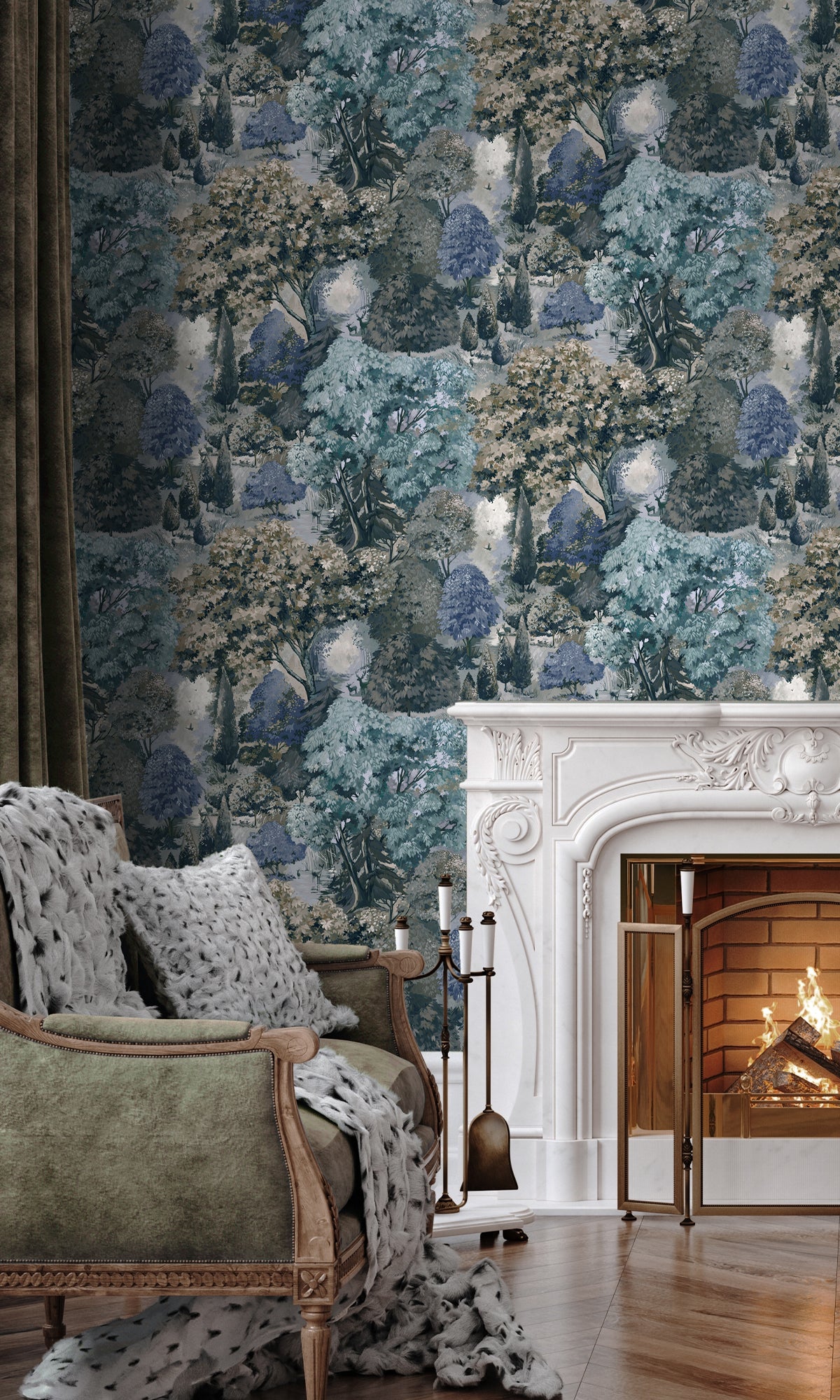 Inspired by the timeless beauty of Victorian tapestries, the Scenic Tapestry Wallpaper brings lush landscapes to life with exquisite hand-painted detail. Tall, graceful trees stretch across the design, while meandering streams and dappled sunlight create a sense of depth and dimension. Each intricate brushstroke enhances the woodland scenery, adding texture and movement to this stunning composition.