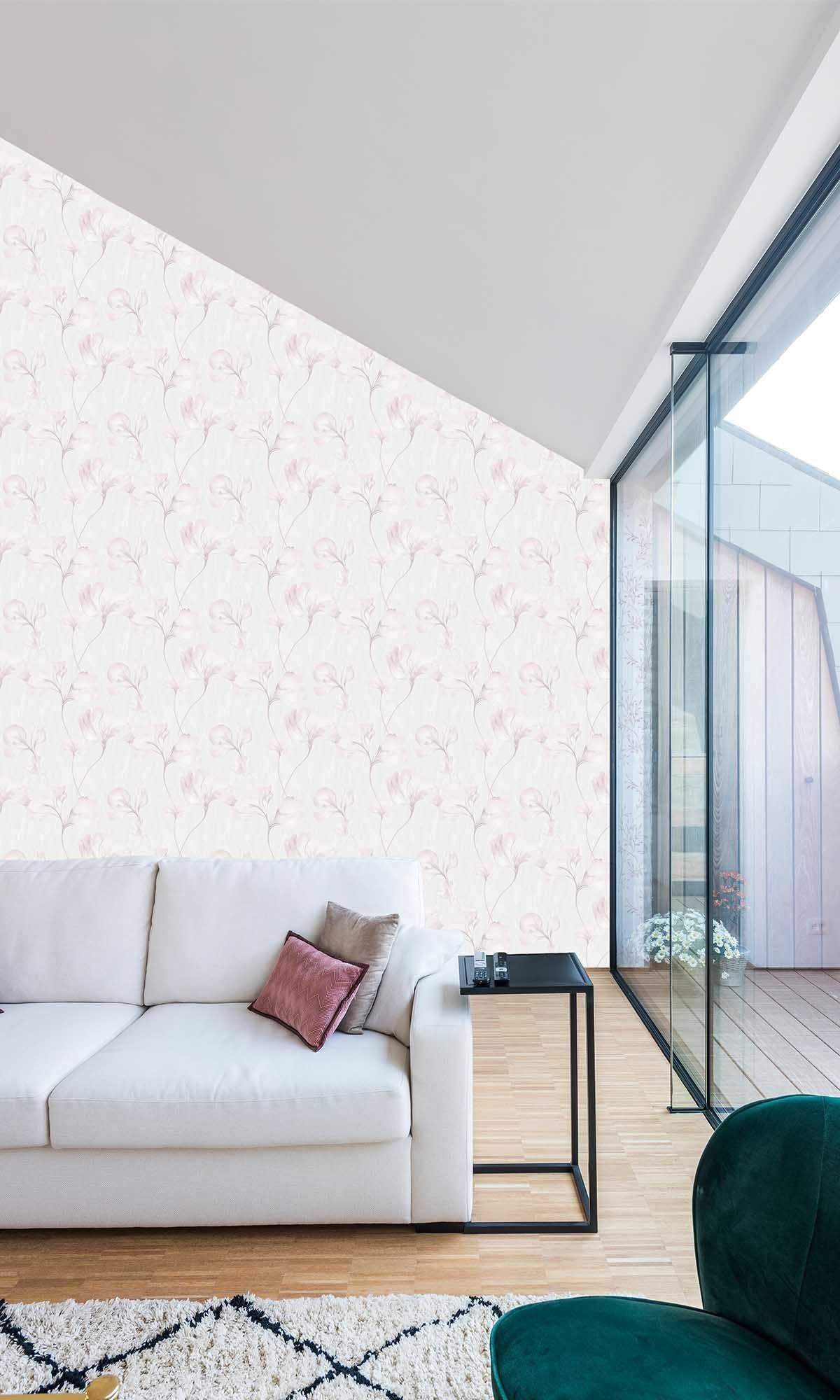 The wallpaper features big, flowing wildflower patterns—think soft-edged petals that almost melt into a gentle background. It’s light, airy, and relaxing. Soft pastel colors give it that dreamy feel, so it works just as well in a bedroom as it does in a hallway or living room. Basically, anywhere you want things to feel calm and inviting.
