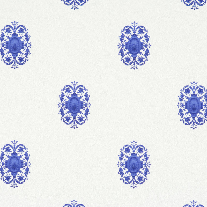Beige and Blue Pleasant Floral Damask Wallpaper R1522