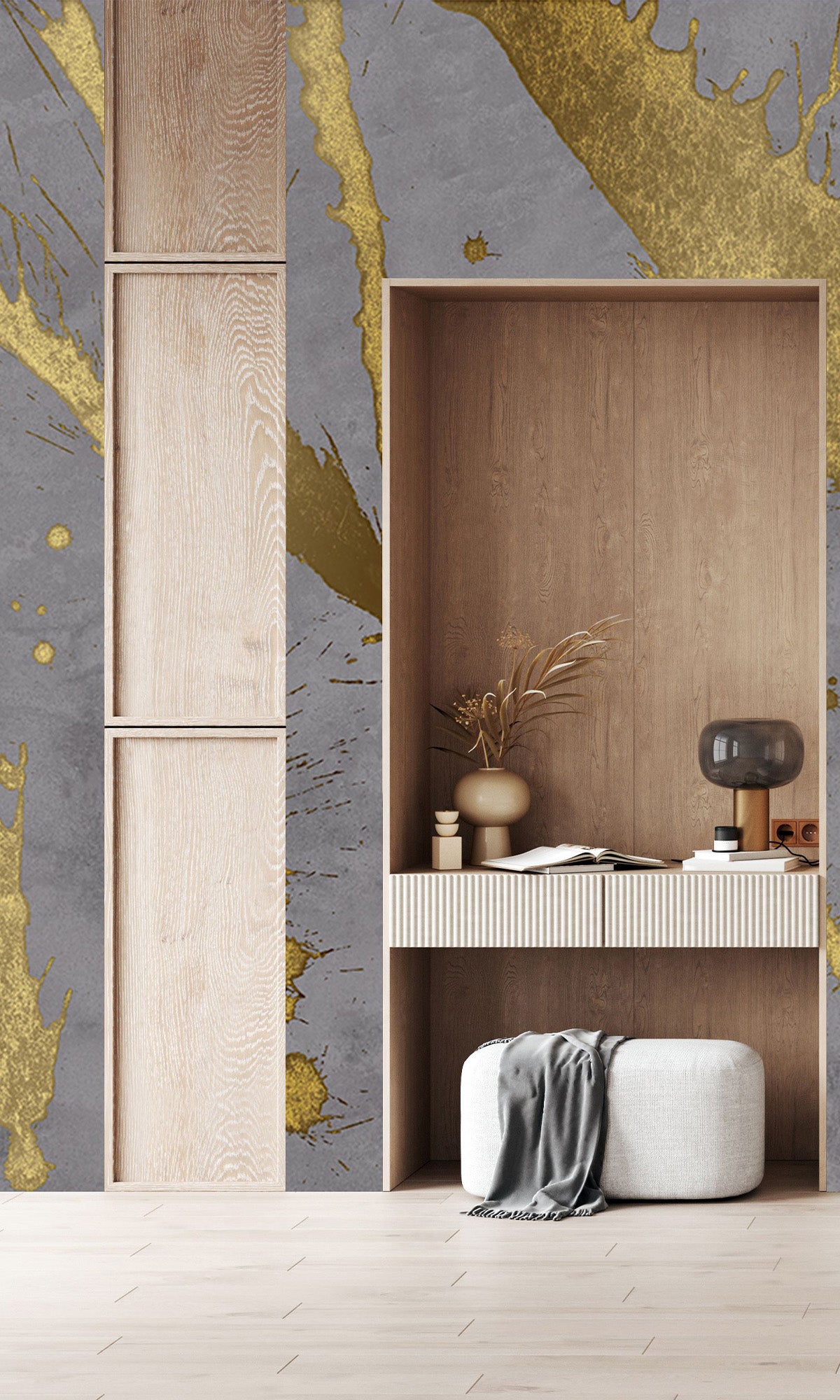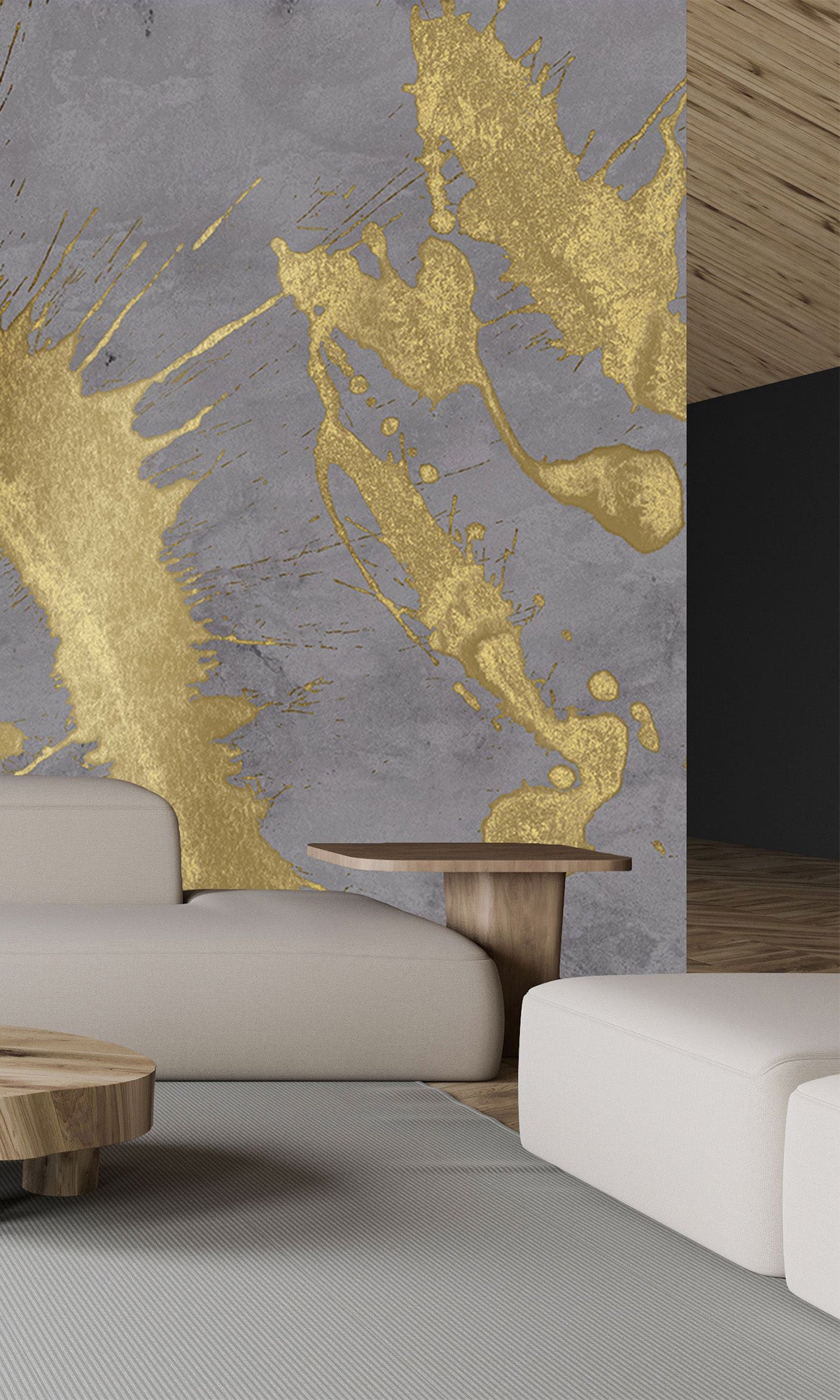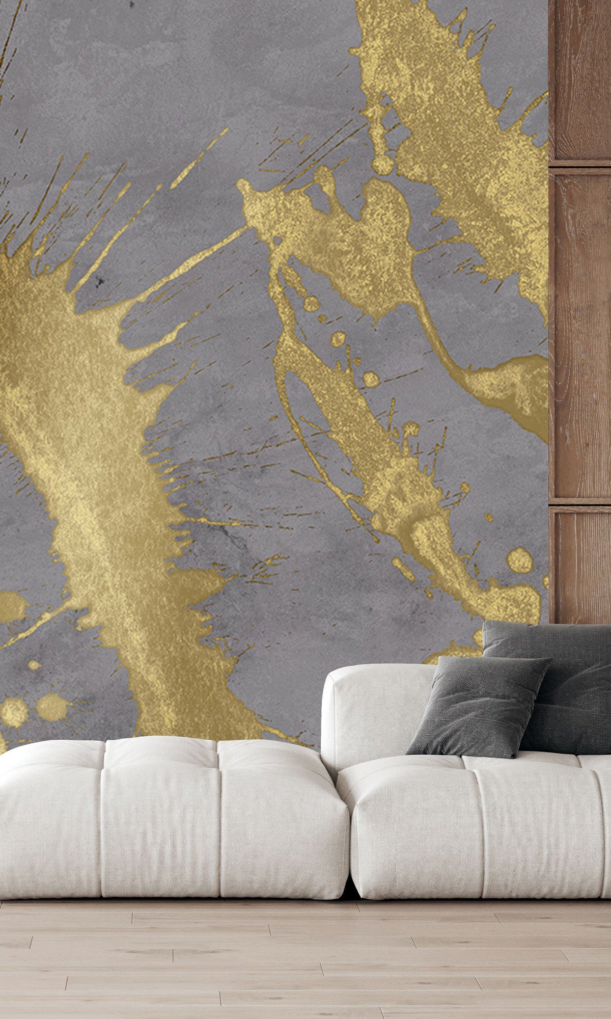 Ash Blue Gold Abstract Paint Splash Mural Wallpaper M2613 - Sample