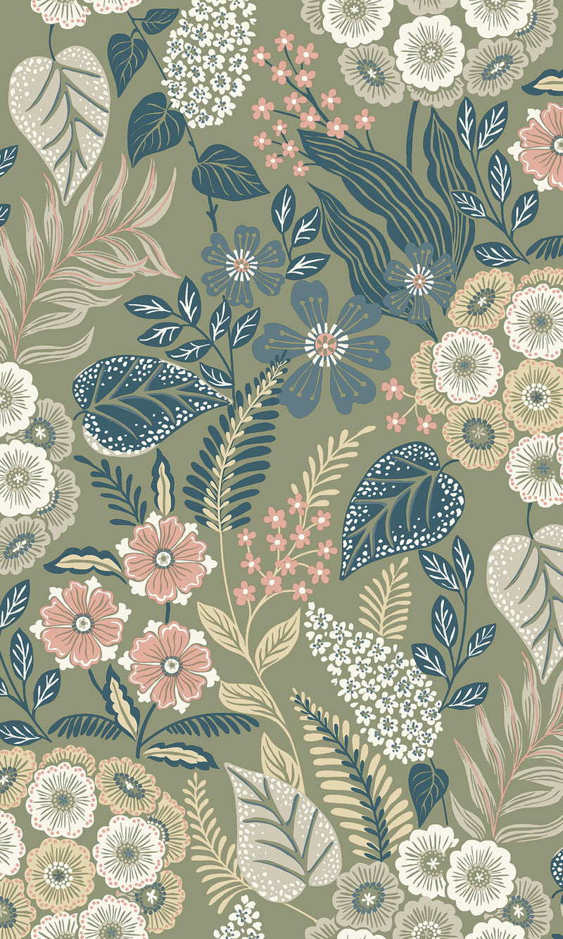 Azalea Leaf & Midnight Navy Chambray Print Wallpaper RM9057