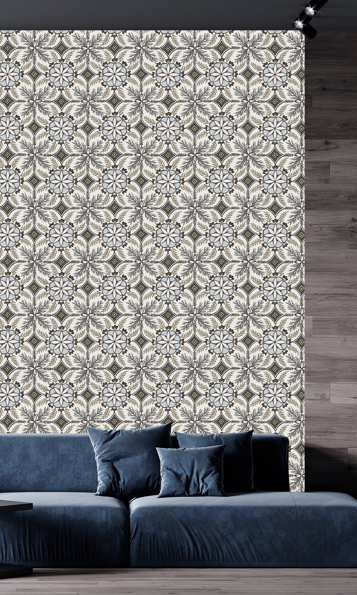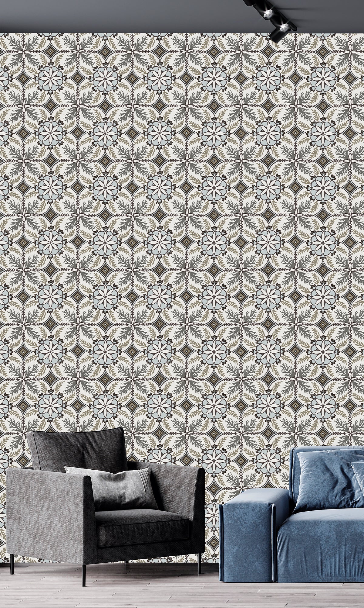 Reform your home into a haven of worldly elegance and preppy charm with our Moroccan Tiles Wallpaper. This stunning design features intricate flowers and coral reef details, adding a splash of exotic artistry while maintaining a sleek, modern vibe. The textured finish brings a subtle depth, making it perfect for creating eye-catching statement walls or achieving an all-over sophisticated look.