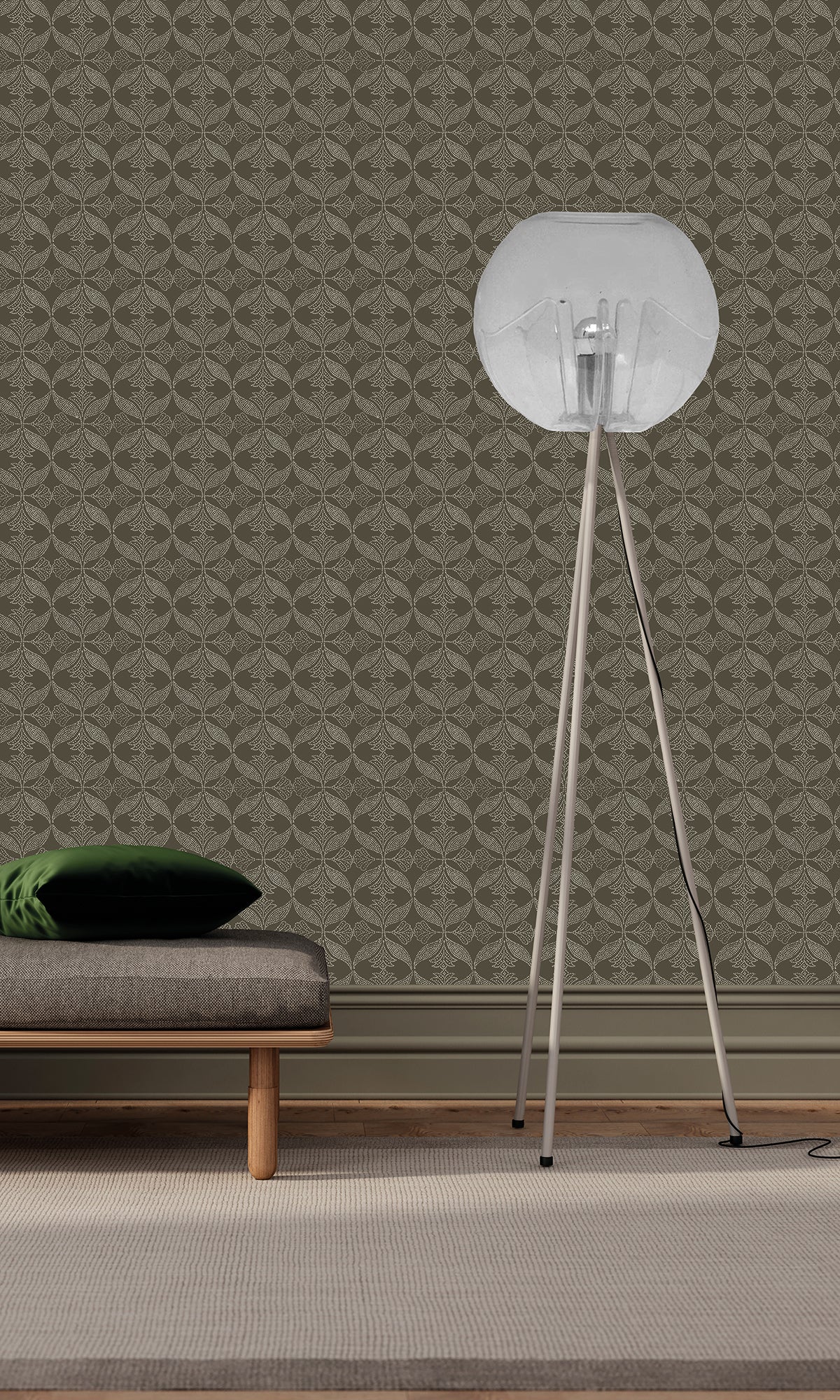 Dark Camo Beige Ornamental Ogee Wallpaper R9975