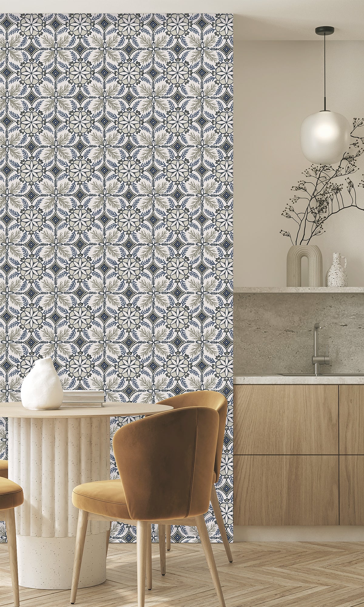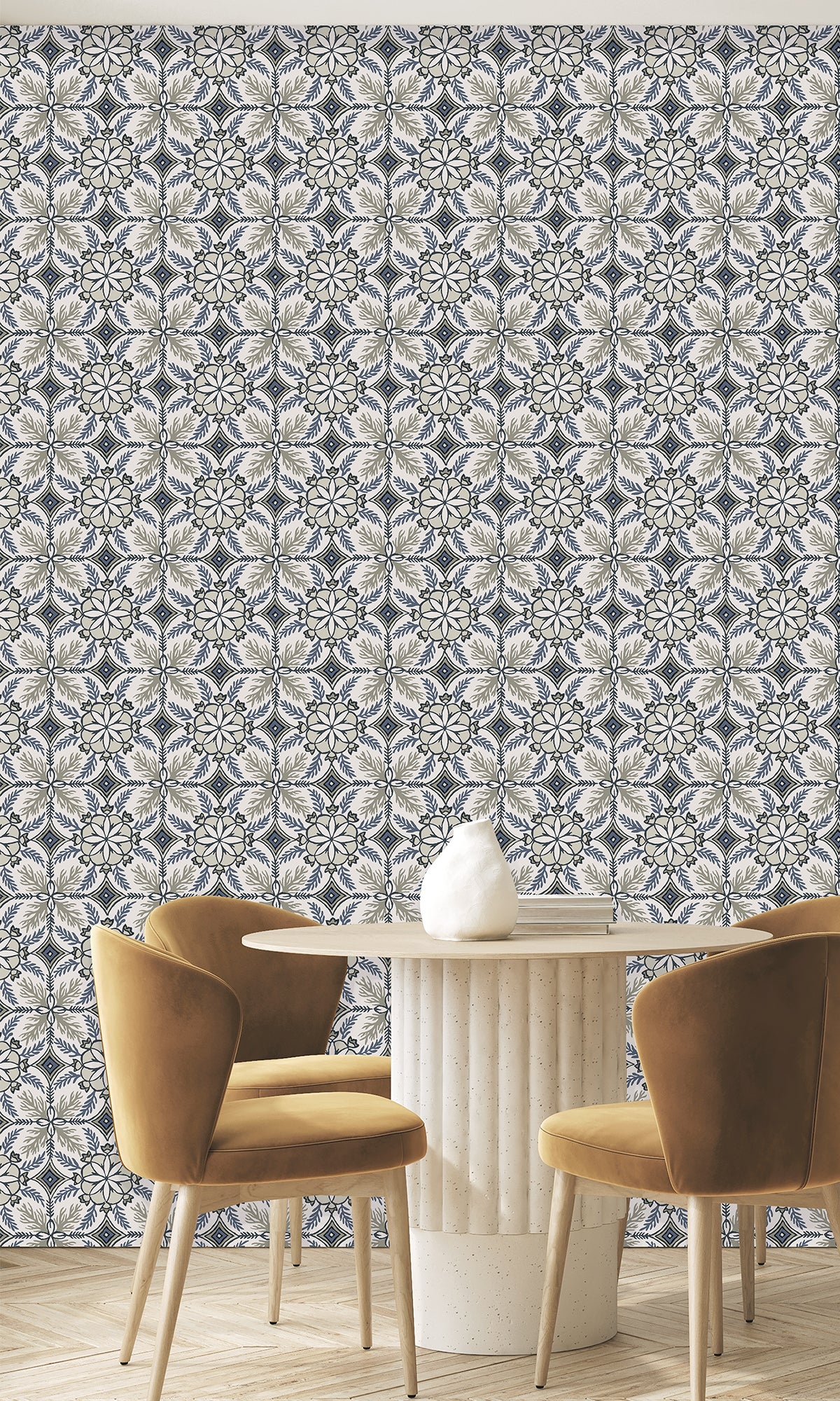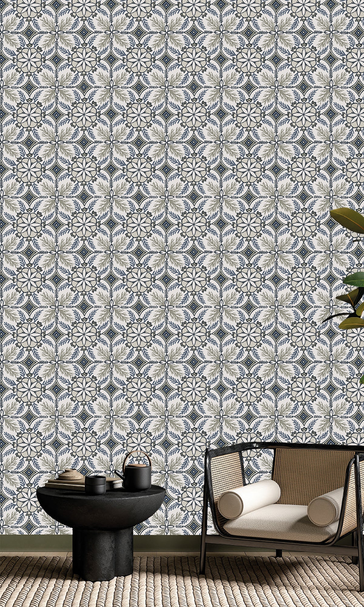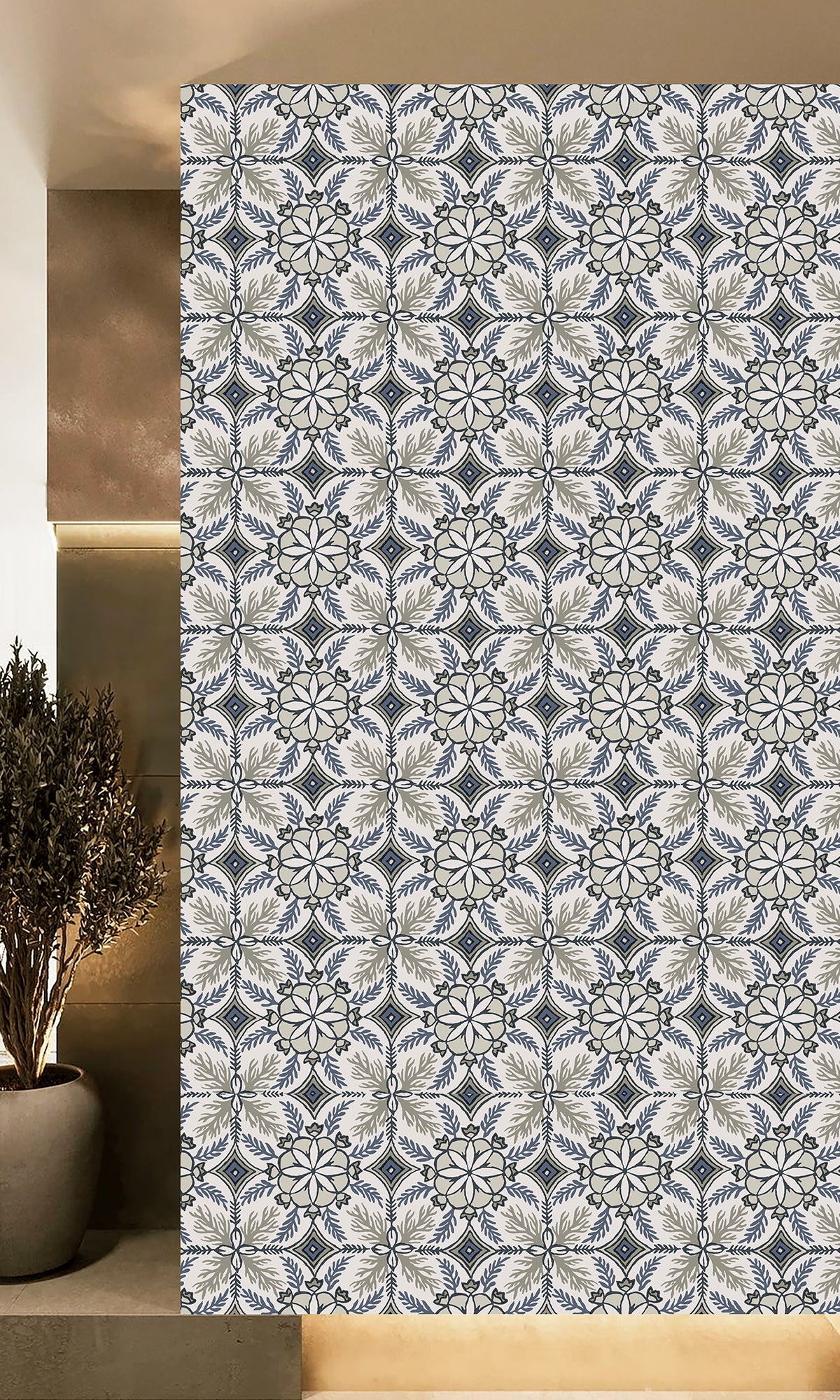Reform your home into a haven of worldly elegance and preppy charm with our Moroccan Tiles Wallpaper. This stunning design features intricate flowers and coral reef details, adding a splash of exotic artistry while maintaining a sleek, modern vibe. The textured finish brings a subtle depth, making it perfect for creating eye-catching statement walls or achieving an all-over sophisticated look.