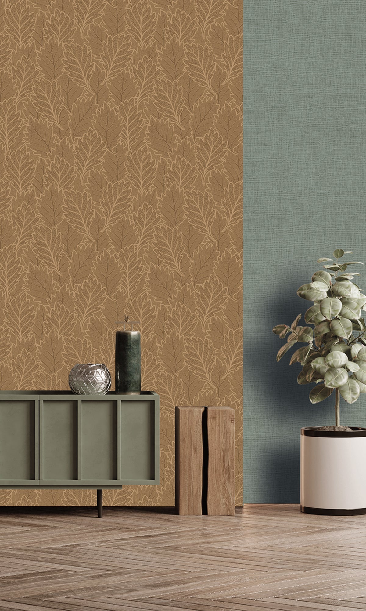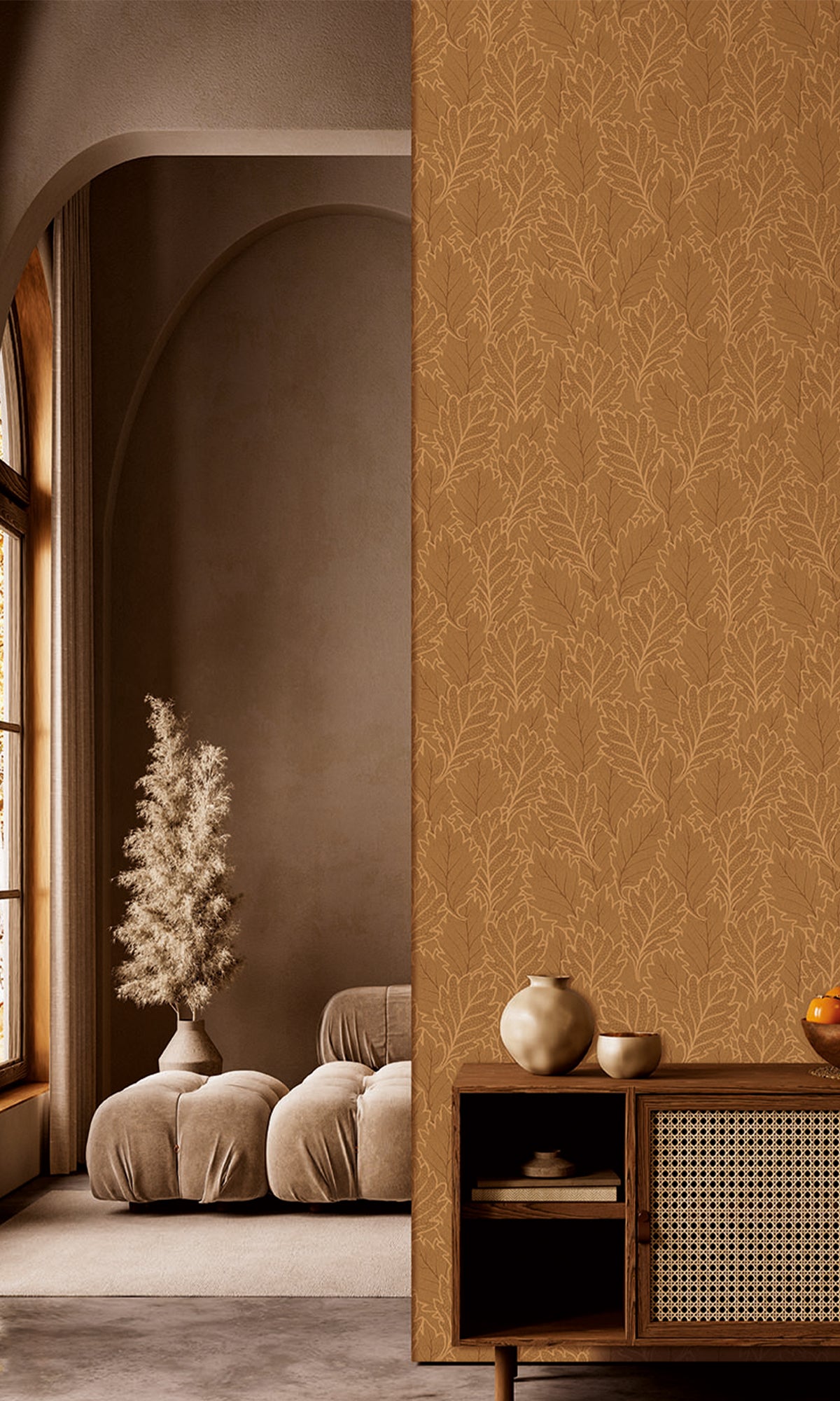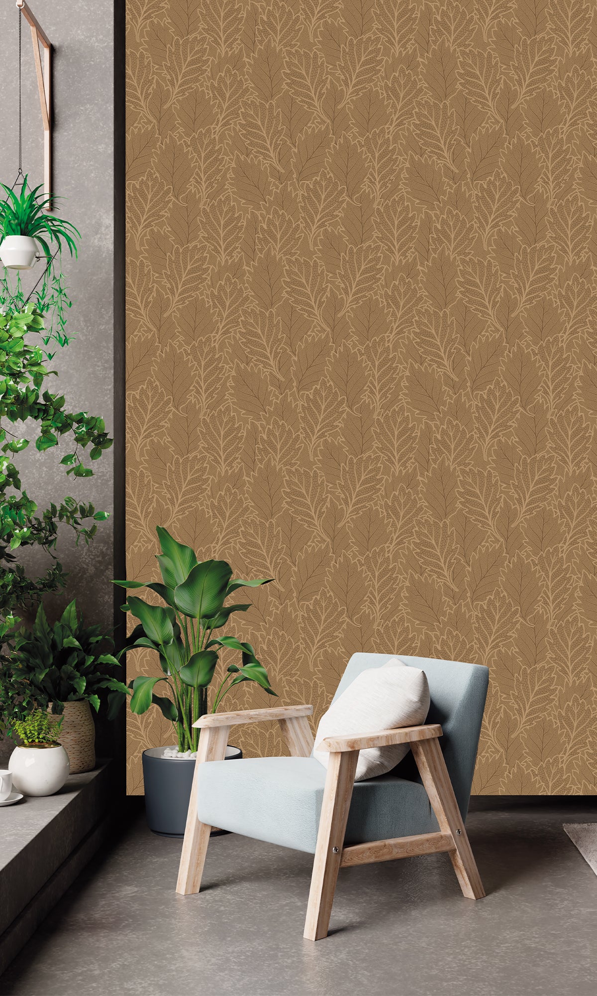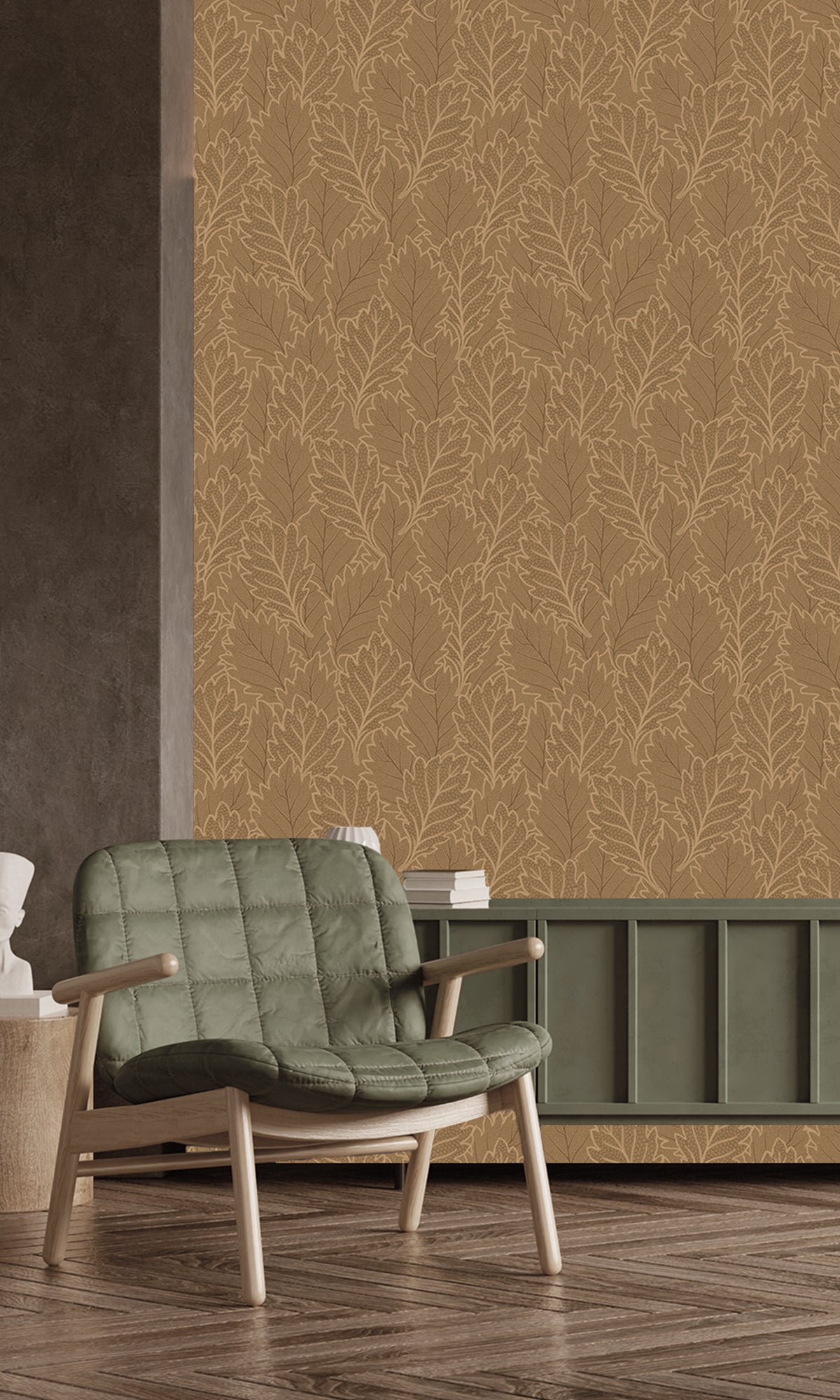 Moroccan Blunt & Grecian Gold Pressed Quercus Leaves Wallpaper R9985