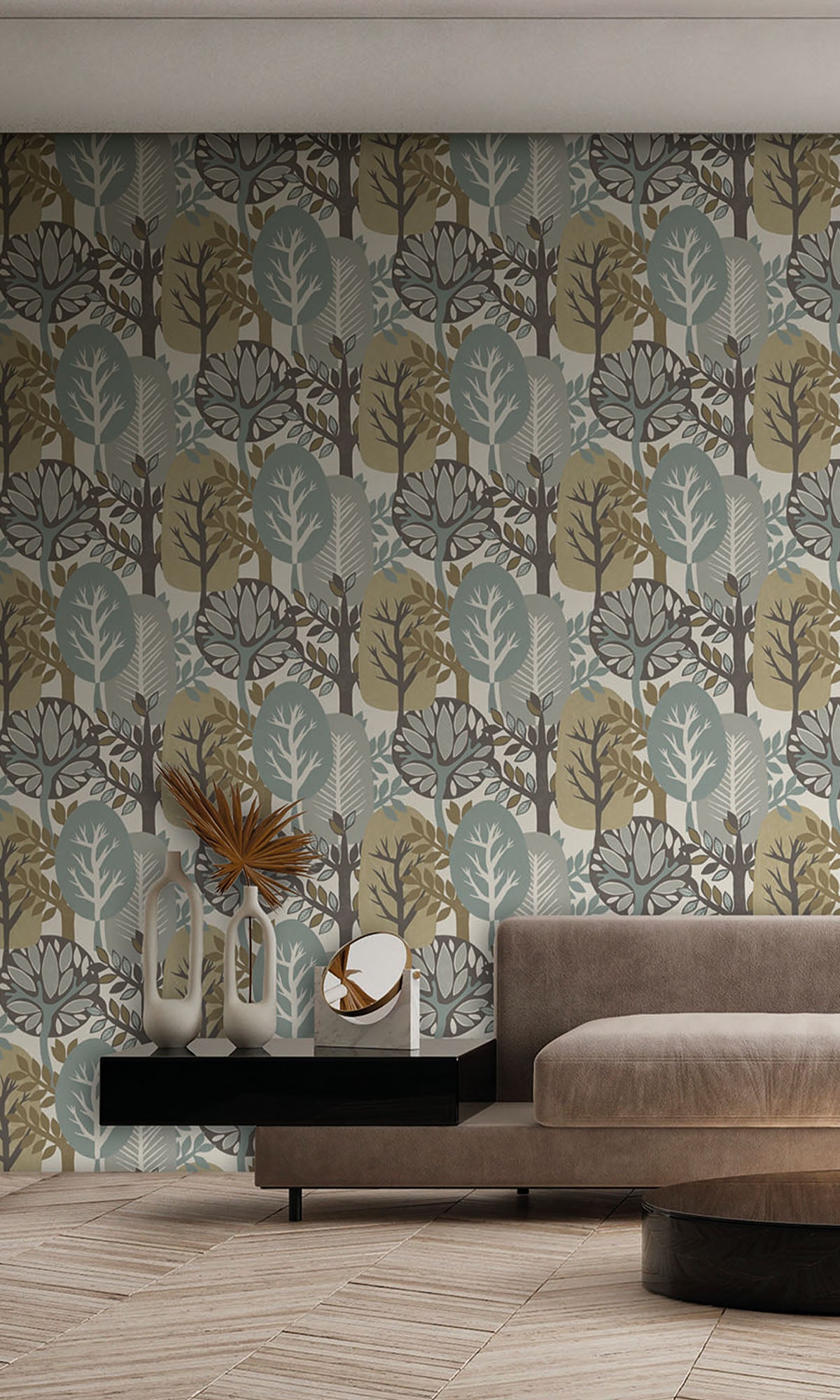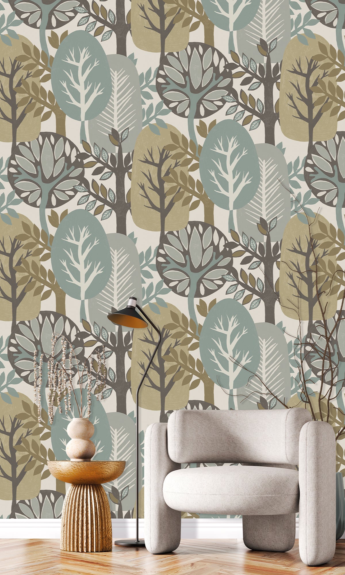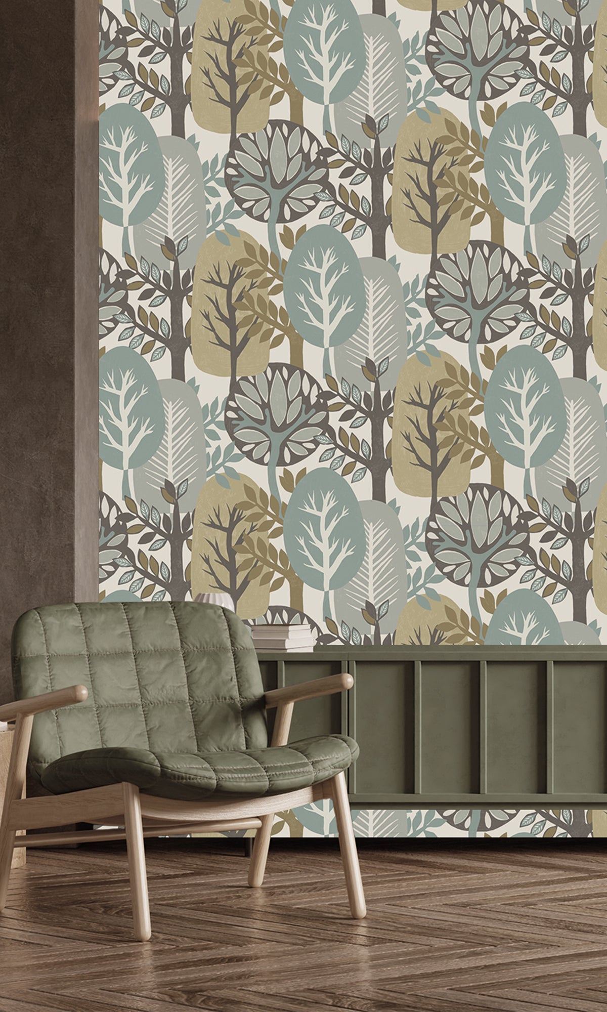 Pearl Oyster & Iceberg Green Nature's Forest Wallpaper R9992