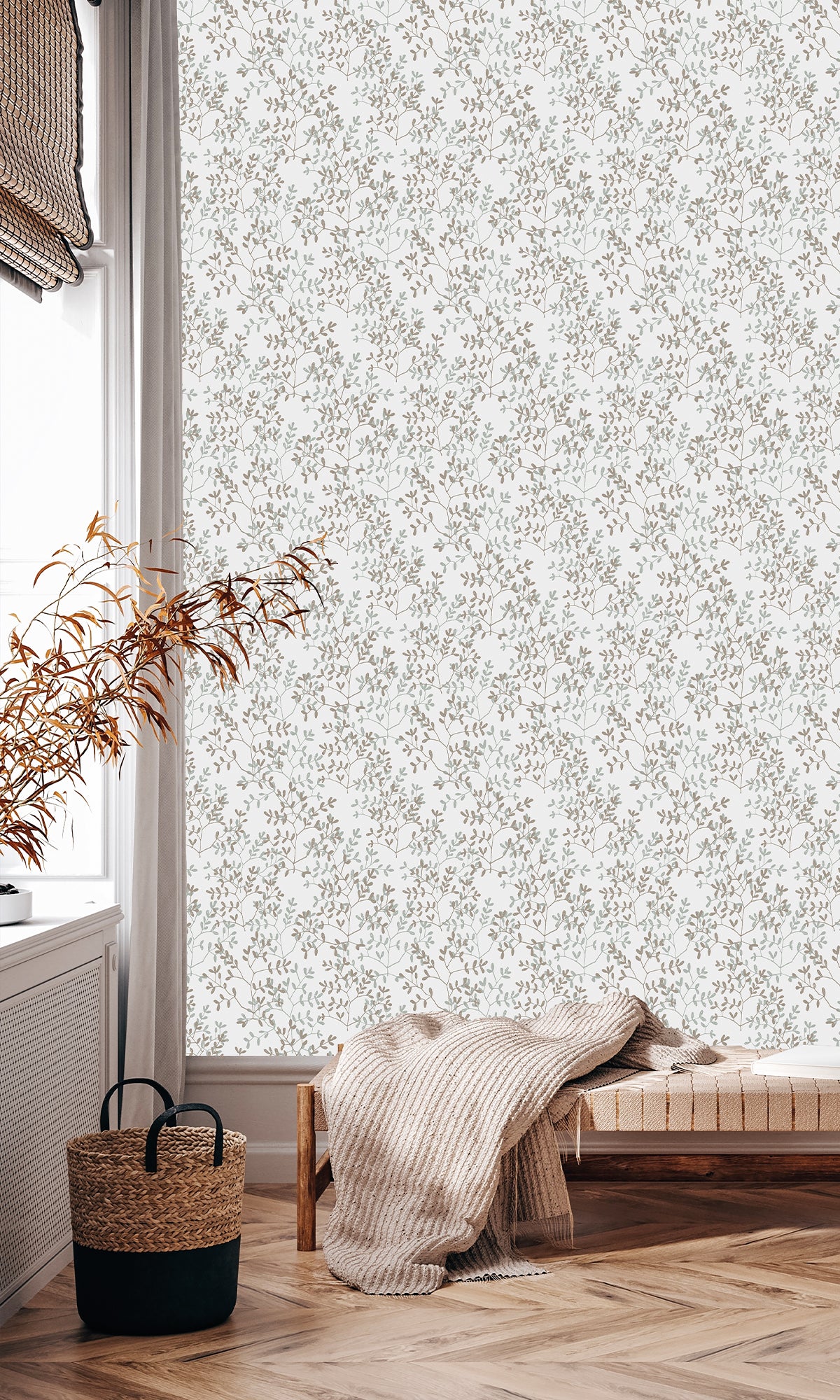 Boost your walls with a touch of bold sophistication through our Dual Toned Branches Wallpaper. This stunning design showcases a striking black and white image of tripinnate compound leaves, seamlessly merging organic elegance with a sharp, graphic aesthetic. The result? A versatile textured wallpaper that feels both contemporary and timeless—ideal for crafting a chic yet refined statement wall.