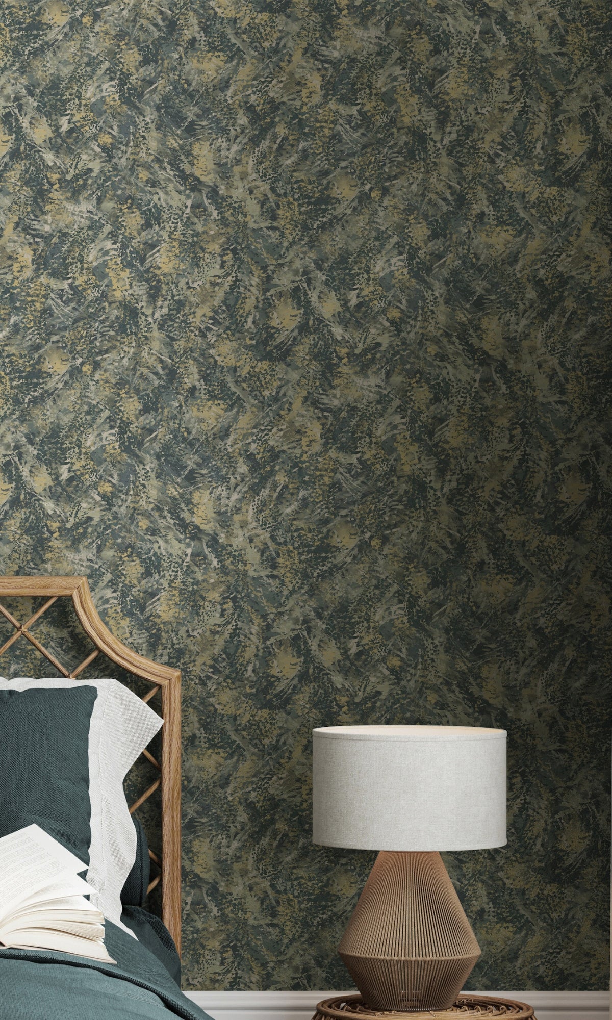 Teal Gold Feather Like Textured Abstract Wallpaper R8939