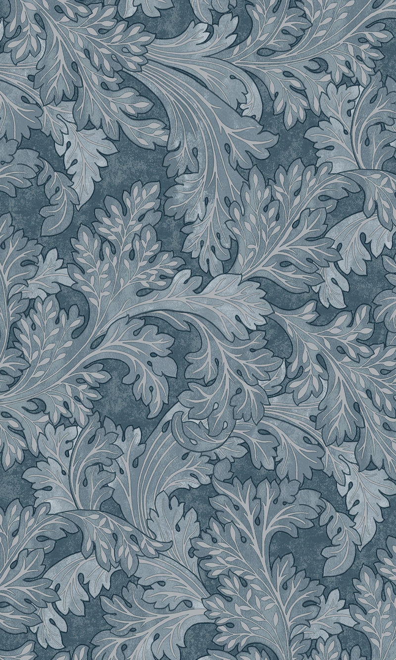 Navy Curling Leaves Tropical Wallpaper R9006