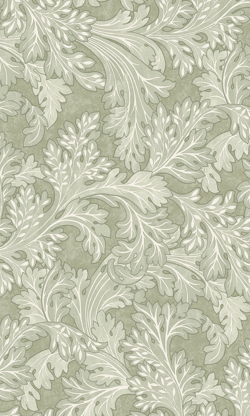 Sage Curling Leaves Tropical Wallpaper R9008