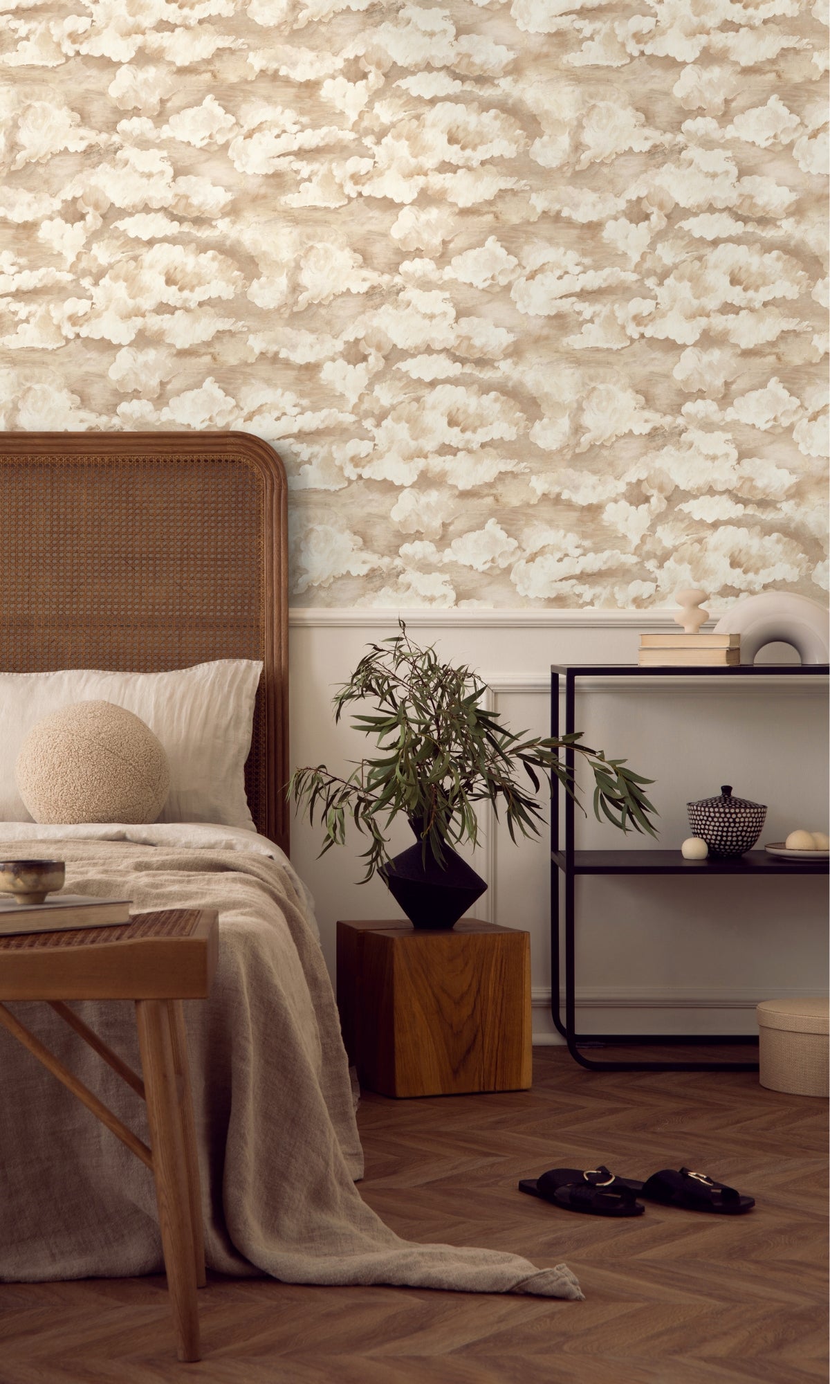 Cream Cloud Filled Sky Plain Textured Wallpaper R9001