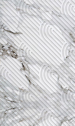 This funky geometric wallpaper mural uses a beautiful white marble background with an engraved geometric pattern made with bold linework.
