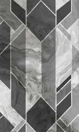 This geometric wallpaper mural features a bold design of large, angled shapes that create a clean and symmetrical pattern. A faux marble effect is applied throughout the mural, adding elegance and depth, making this a perfect feature wall wallpaper.