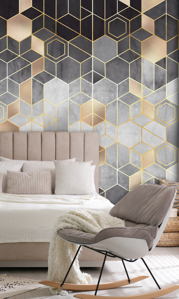 Multicolor Shining Hexagon Geometric Wallpaper Mural M1003