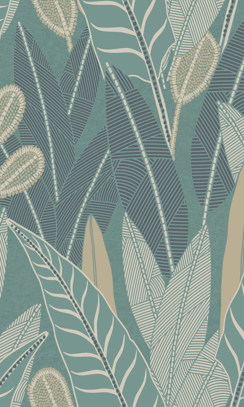 Blue Charming Leaves Tropical All Over Wallpaper R9351