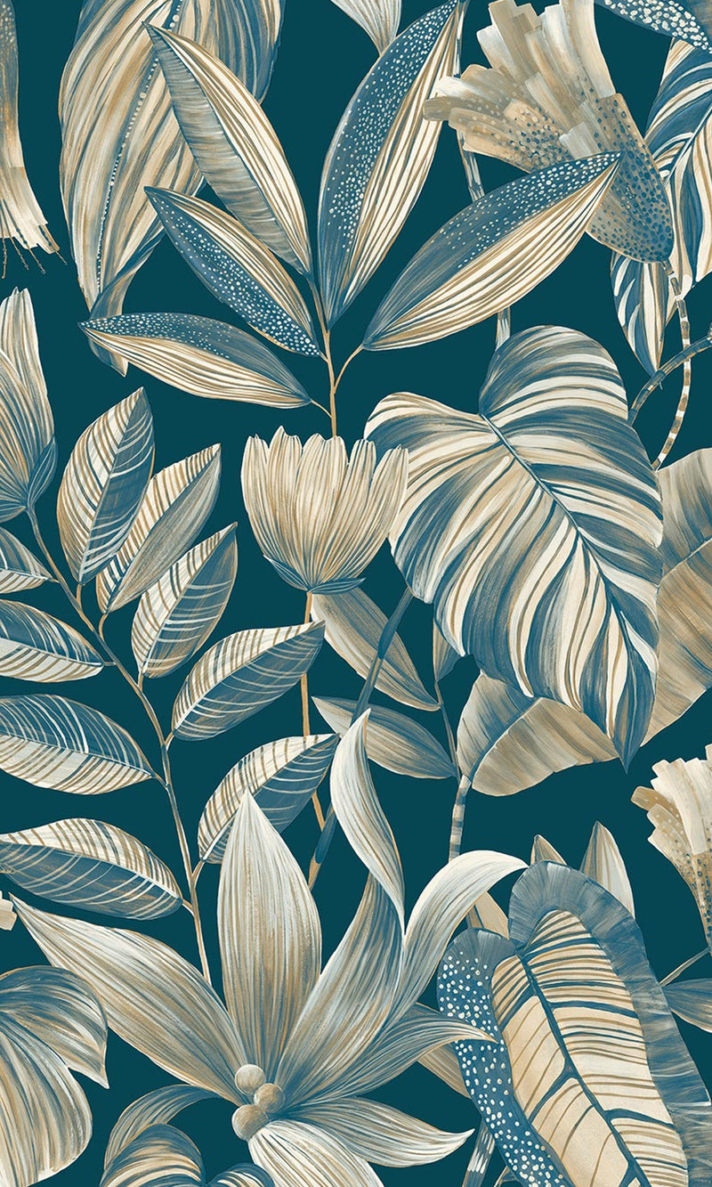 Blue Tropical Jungle Leaves Wallpaper R9259