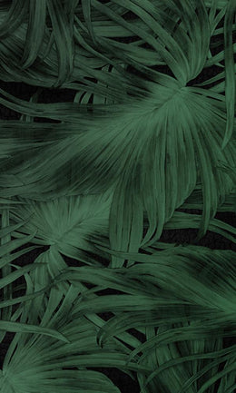 Large scale tropical leaves completely cover the wall in this botanical mural. The leaves are portrayed in an artistic way, flowing over each other in an almost hair-like way. This botanical mural is dominated by a single overall color for a twist on the classic jungle leaf design.