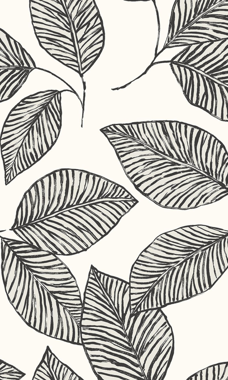 Black & White Jungle Leaves Tropical Wallpaper R8357