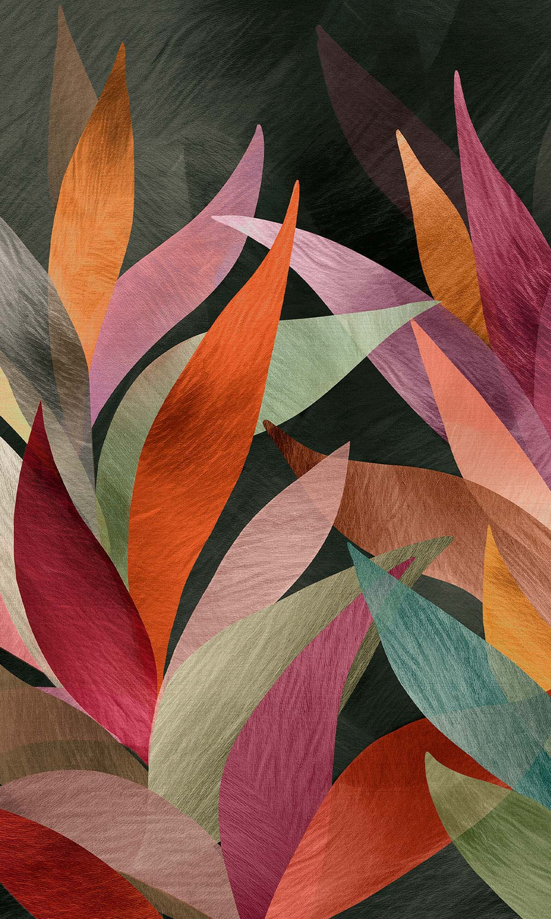 Multi Overlapping Organic Leaves Residential Mural RM9129