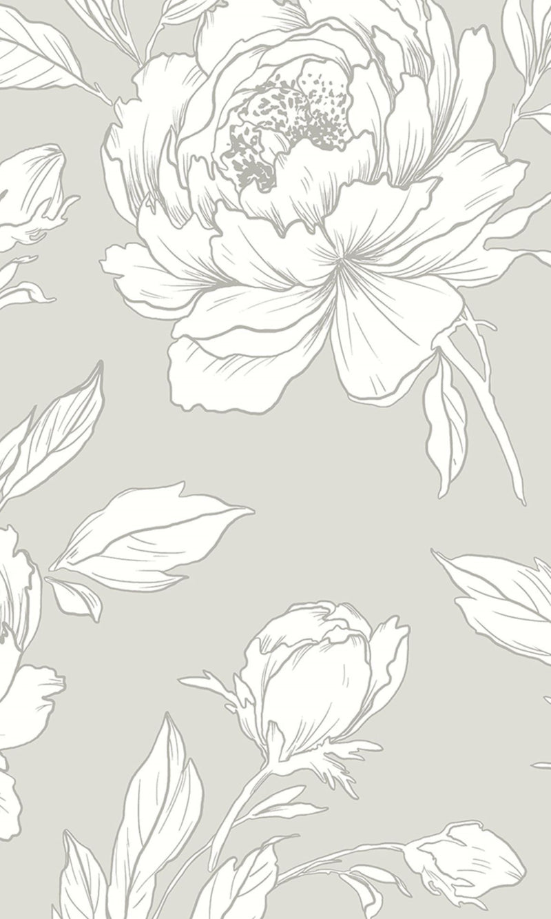 Grey and White Floral Abstract Watercolor Wallpaper R4760