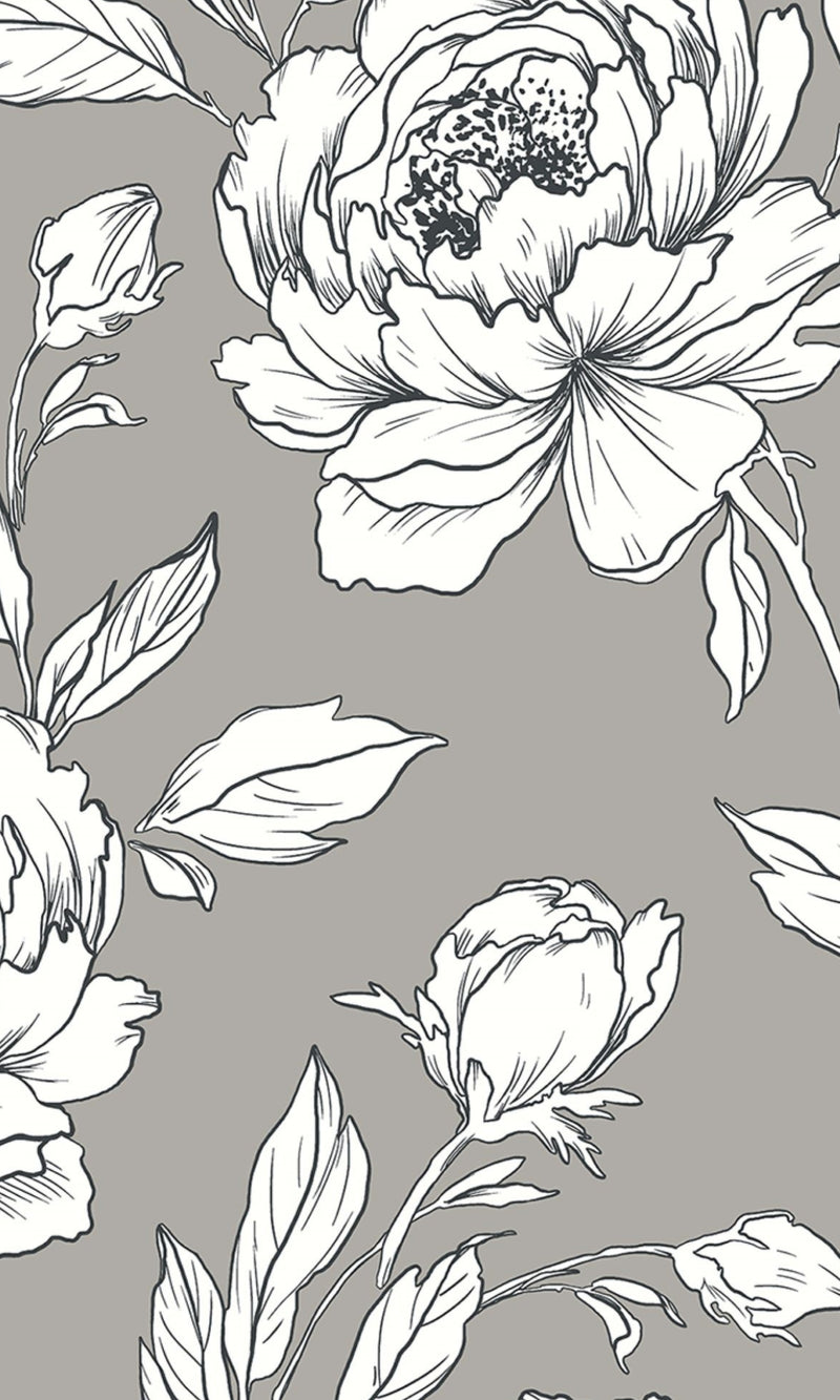 Grey Hand Painted Fantasy Floral Blossoms Wallpaper R7877