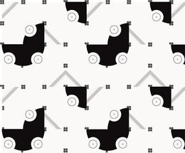 Carriage is an eclectic depiction of a baby carriage in a black and white pattern. Use it for a uncharacteristic geometric pattern.
