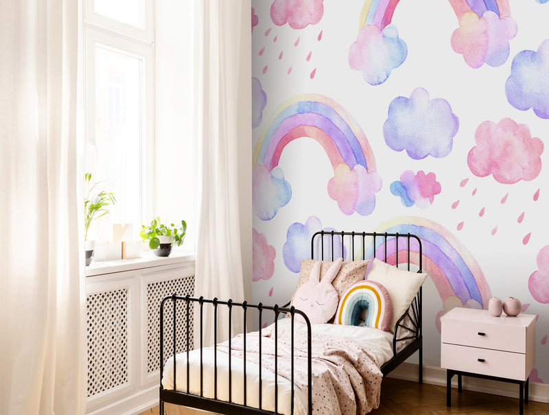 Colorful Rainbow and Clouds Mural Wallpaper M1469