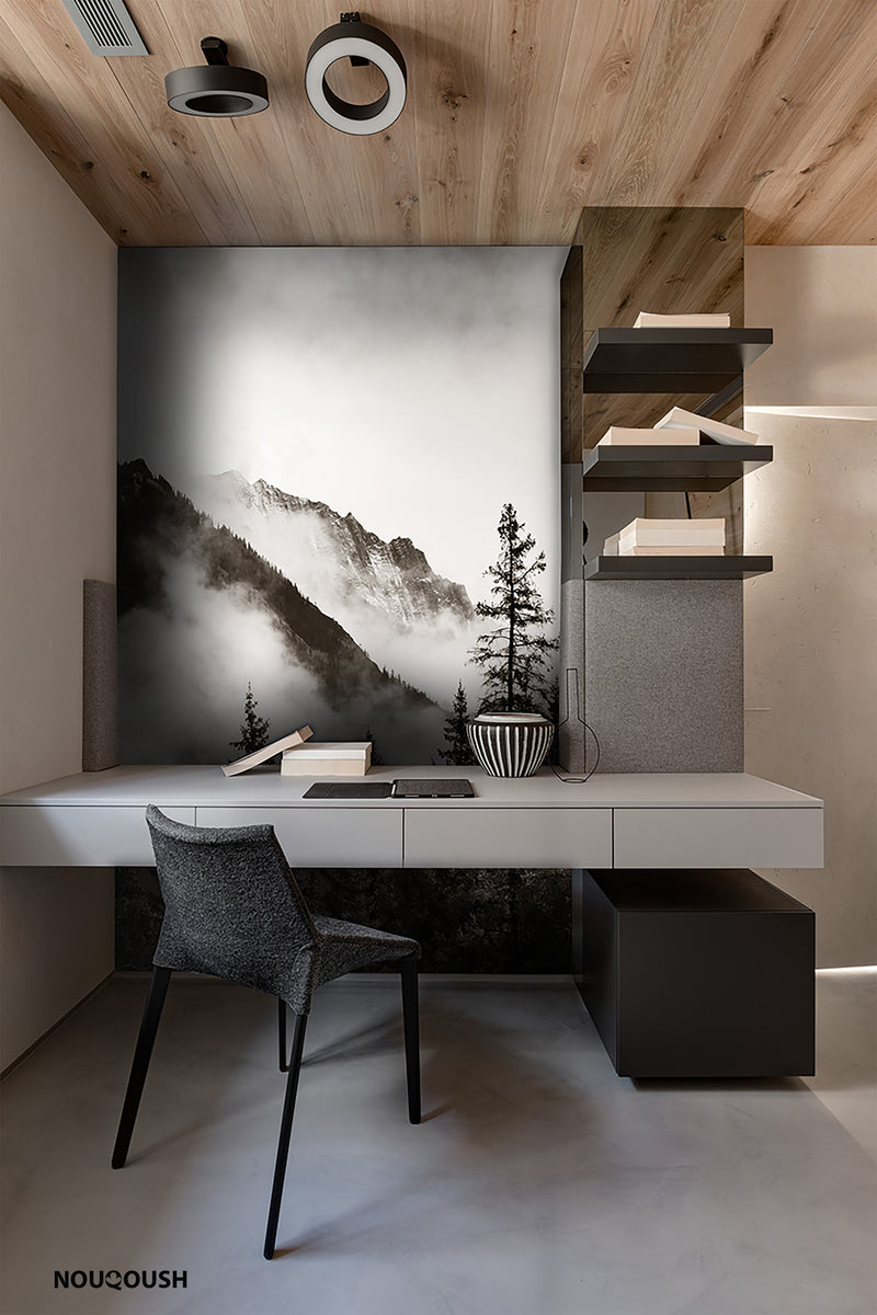 Black & White Mountain View Wallpaper Mural M1141