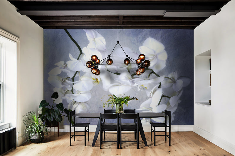 Blue A branch of white Orchid Mural Wallpaper M1150