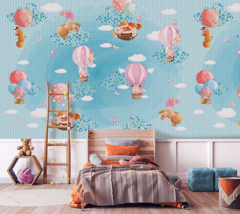 Colorful Cute animals with Balloons Mural Wallpaper M1144