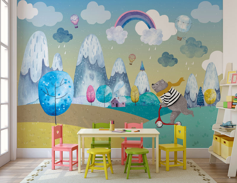 Colorful Cute bear with Bicycle Mural Wallpaper M1157