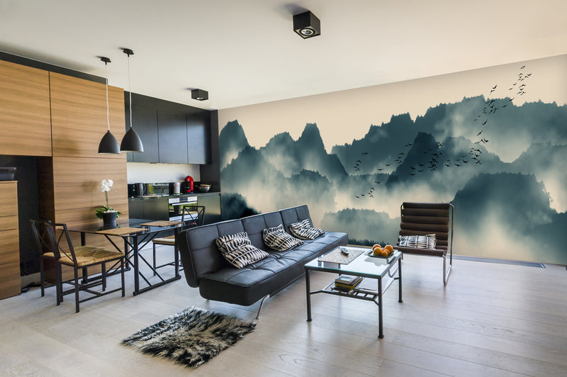 Blue Misty Mountains Mural Wallpaper M1145