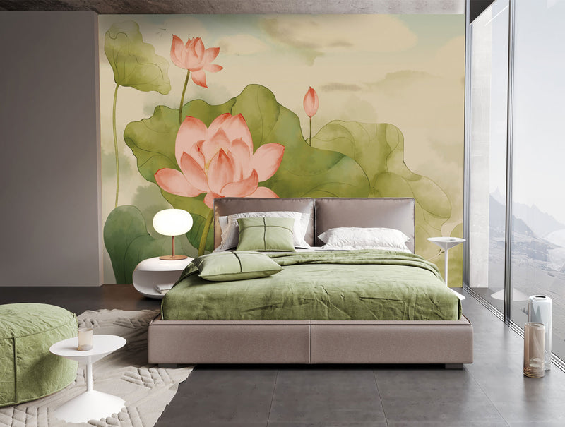 Colourful Watercolour Lotus Mural Wallpaper M1161