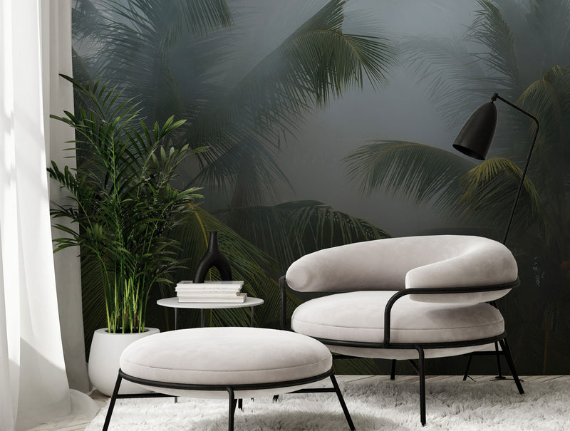 Green Coconut trees in the Fog Mural Wallpaper M1139