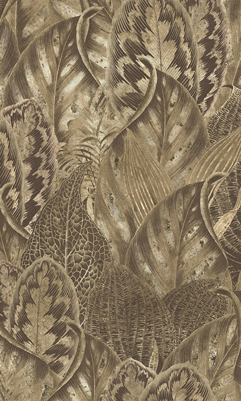 Khaki Vibrant Leafy Collage Mural Wallpaper M2555
