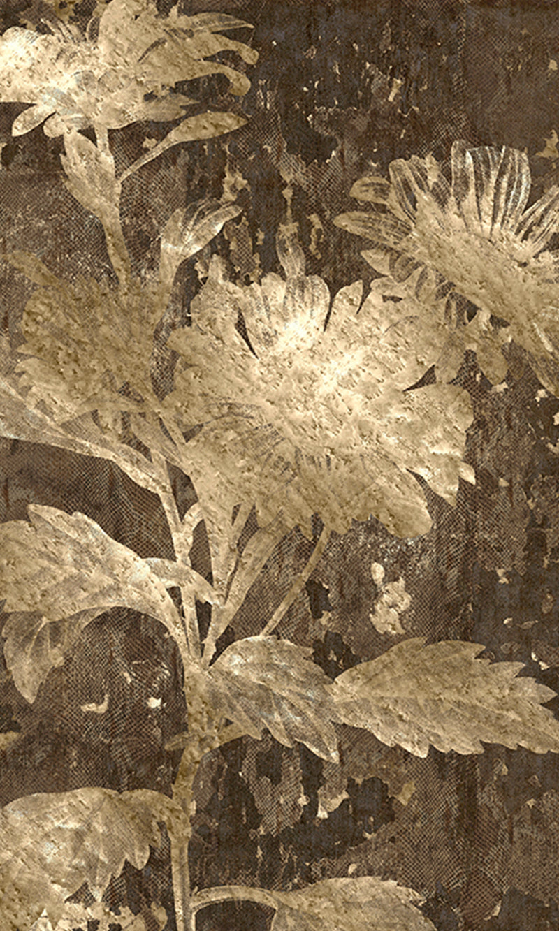 Copper Brown Enchanted Floral Abstract Mural Wallpaper M2562