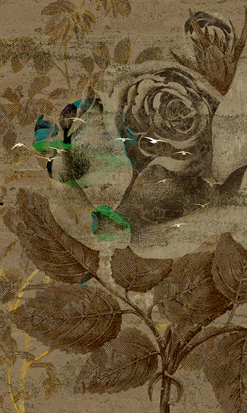 Gold Brown Enchanted Roses Mural Wallpaper M2568