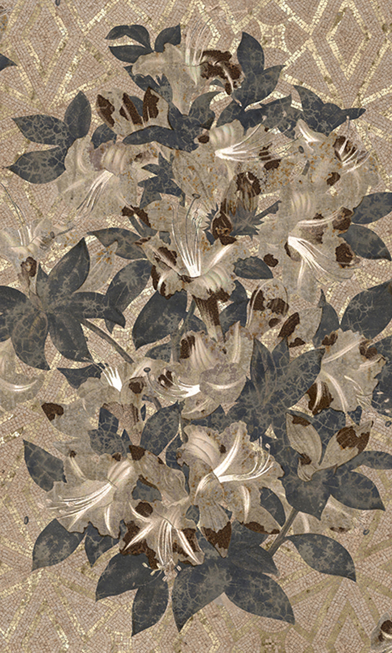 Charcoal Geometric Floral Mosaic Mural Wallpaper M2577