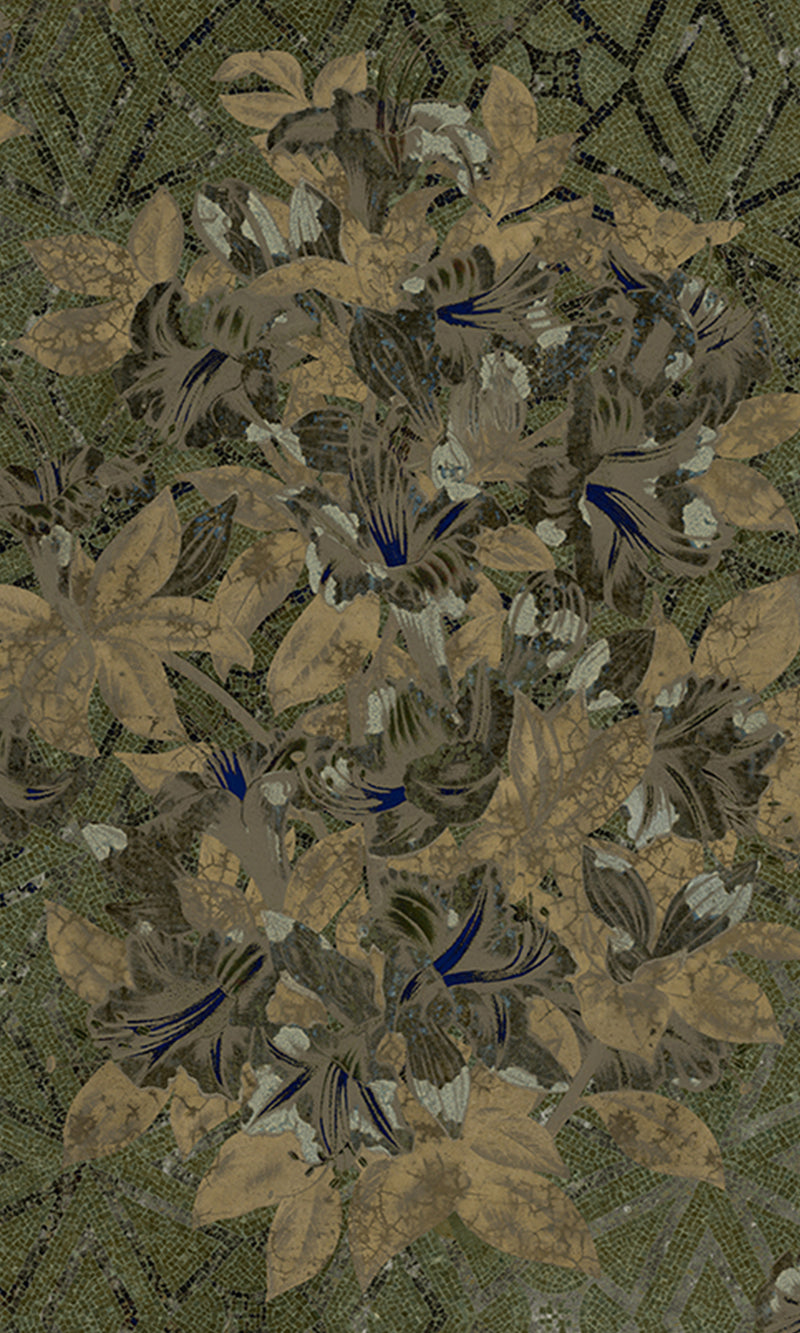 Moss Green Geometric Floral Mosaic Mural Wallpaper M2578