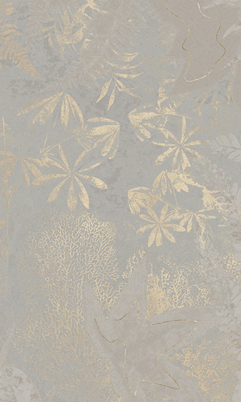 Slate Grey Gold Botanical Shadow Print Mural Wallpaper M2591