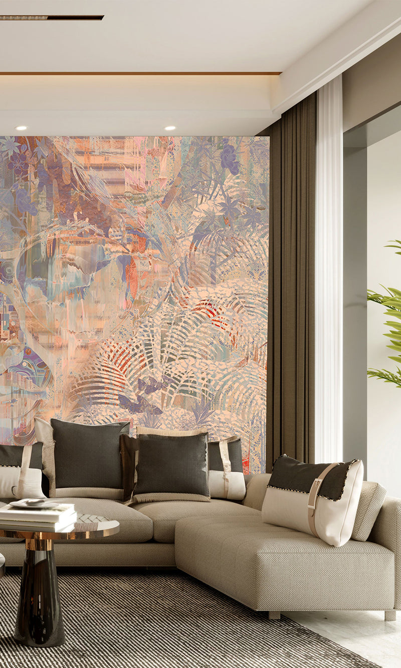 Multi-Colored Feathered Neon Mural Wallpaper M9307
